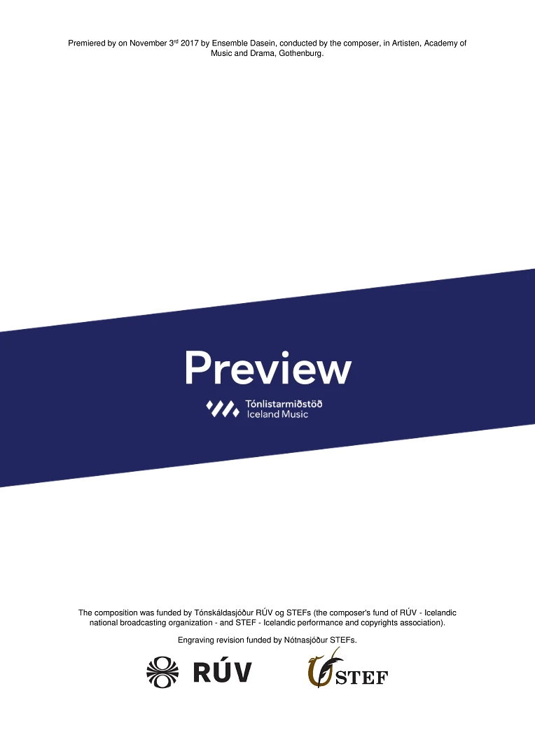 Commissioned and premiered by Ensemble Dasein Friday, November 03, 2017 Ohlinsalen, Artisten, Academy of Music and Drama, Gautaborg.