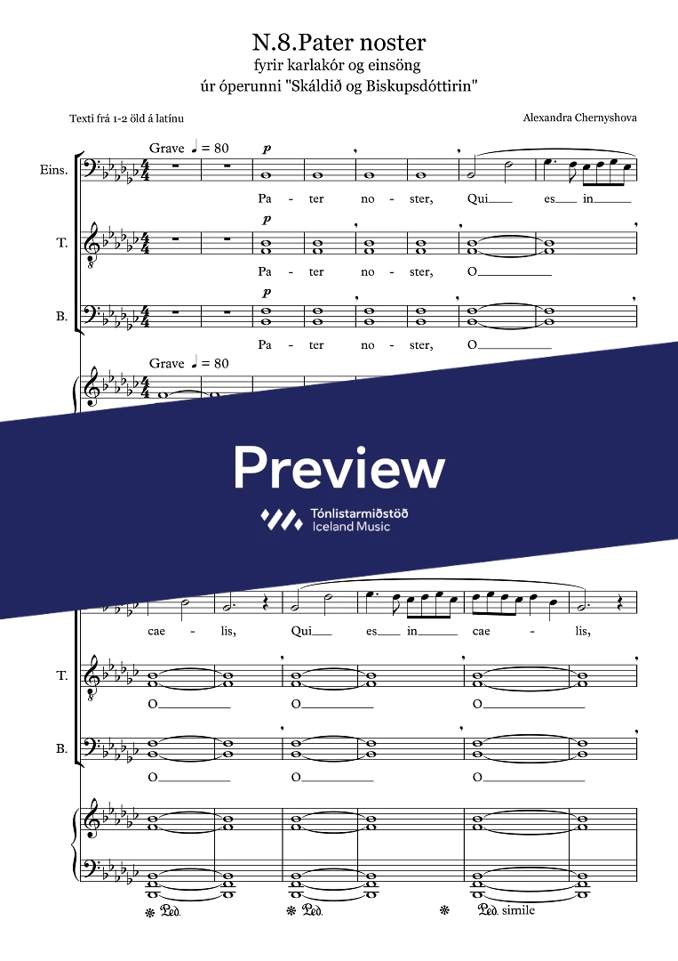 From the book "14 arias from the opera "The Poet and the Bishop's Daughter". First performed in the Kaldalón Hall, Reykjavík, October 2015, by Alexandra Chernyshova, soprano & Helga Bryndís Magnúsdóttir. The complete opera was premiered in 2014. Supported by funds from the Icelandic Musician's Union and the Society of Icelandic Musicians.
