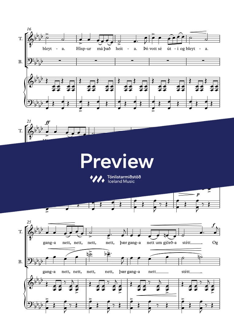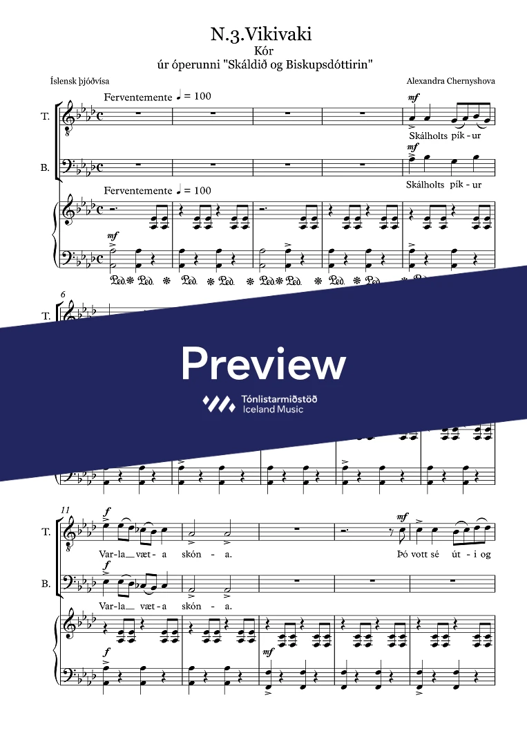 From the book "14 arias from the opera "The Poet and the Bishop's Daughter". First performed in the Kaldalón Hall, Reykjavík, October 2015, by Alexandra Chernyshova, soprano & Helga Bryndís Magnúsdóttir. The complete opera was premiered in 2014. Supported by funds from the Icelandic Musician's Union and the Society of Icelandic Musicians.