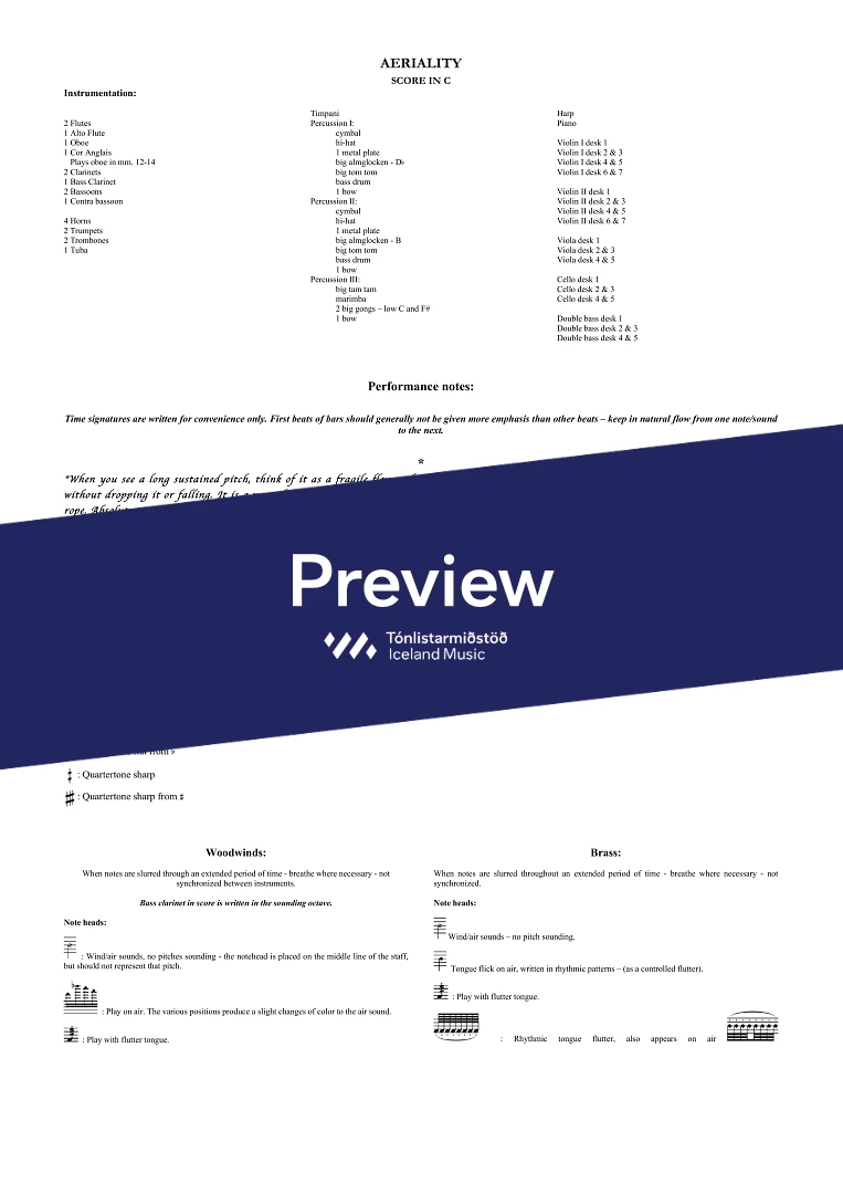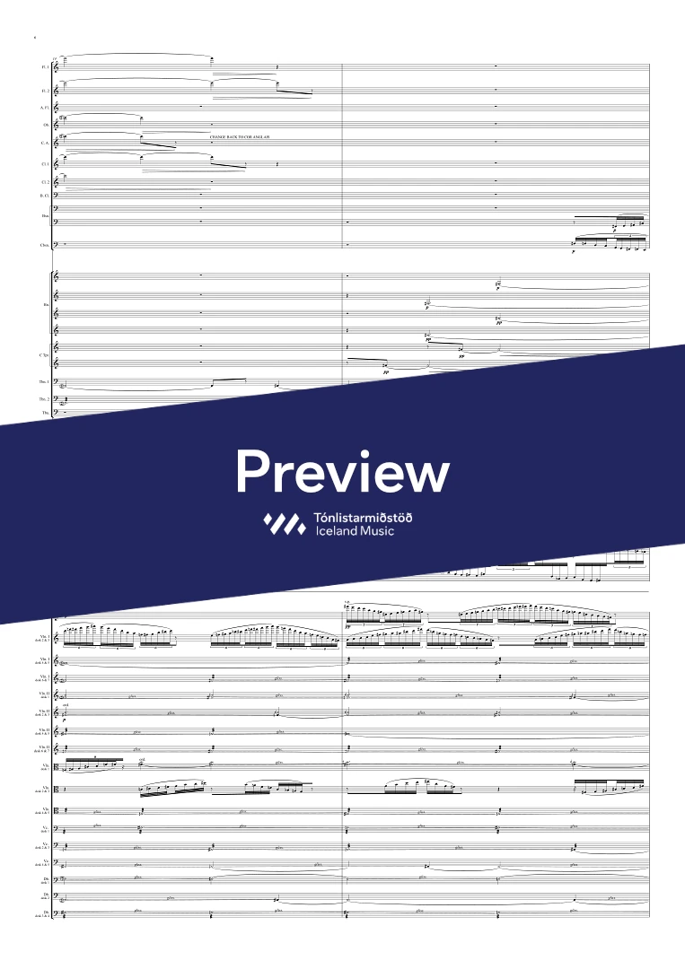 Instrumentation 3(afl.)2(cang.)3(bcl.)3(cbsn) - 4,3,2,1 - tmp. - perc.(3) - hp. - pno. - str.