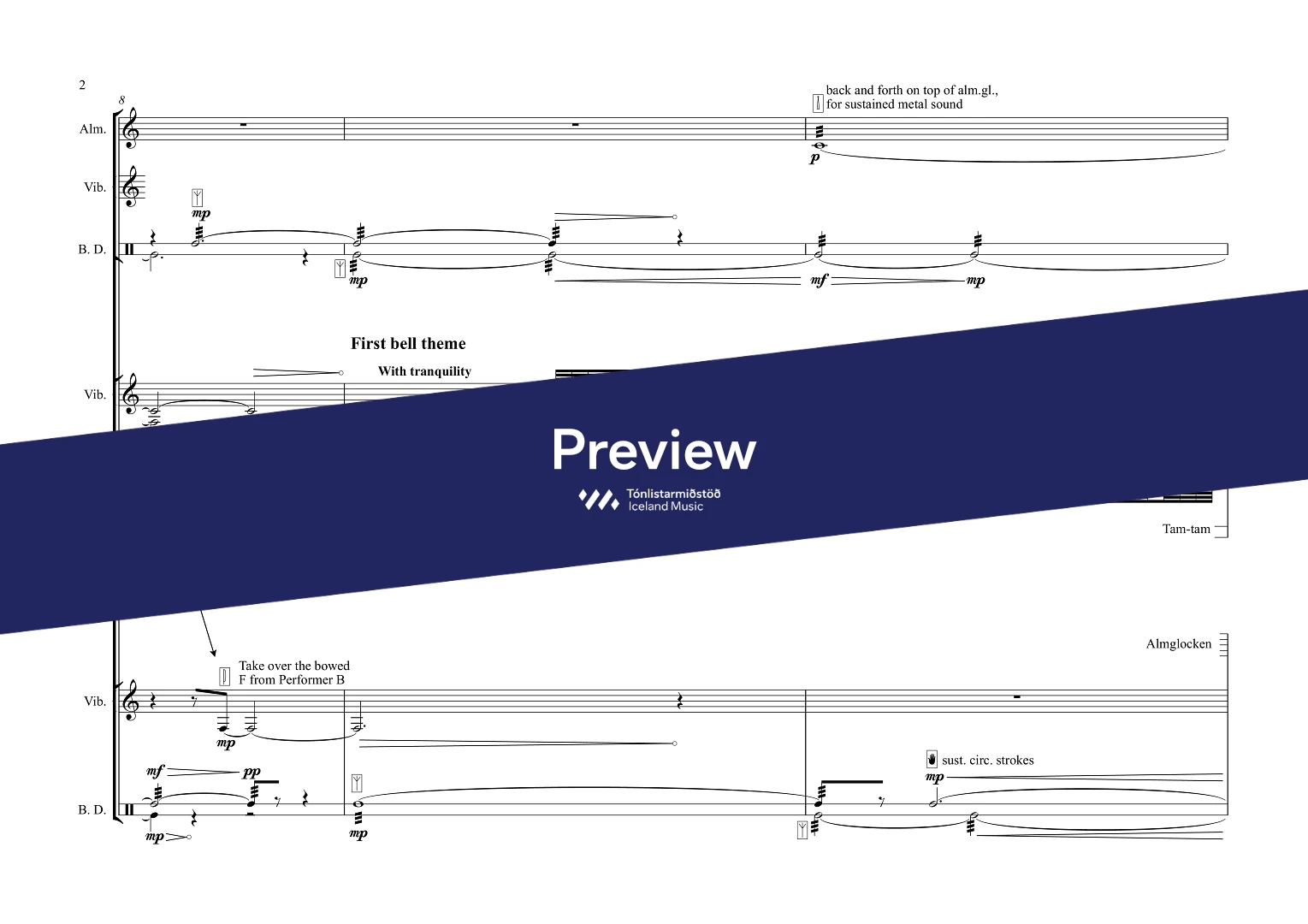 Anna Thorvaldsdottir has also made an arrangement of this work for percussion quartet (see 835-051) for performance by the Los Angeles Percussion Quartet in January, 2016.