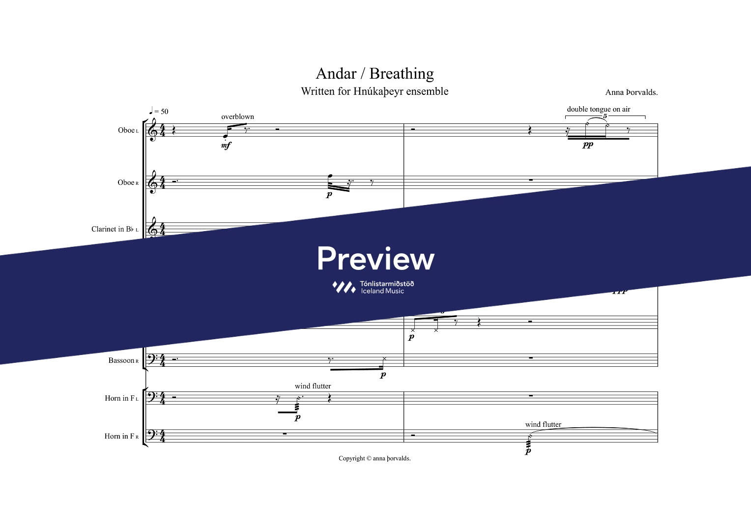 We are unable to supply this work. Anna Þorvaldsdóttir's music is published by Wise Music Classical.