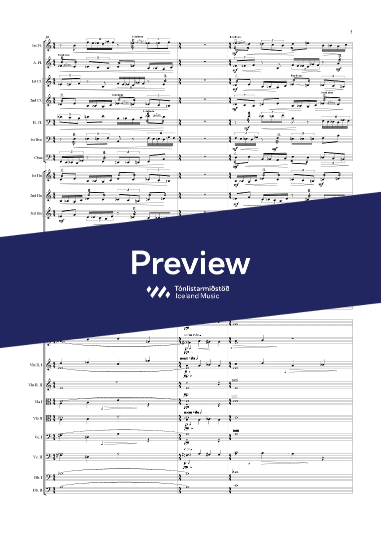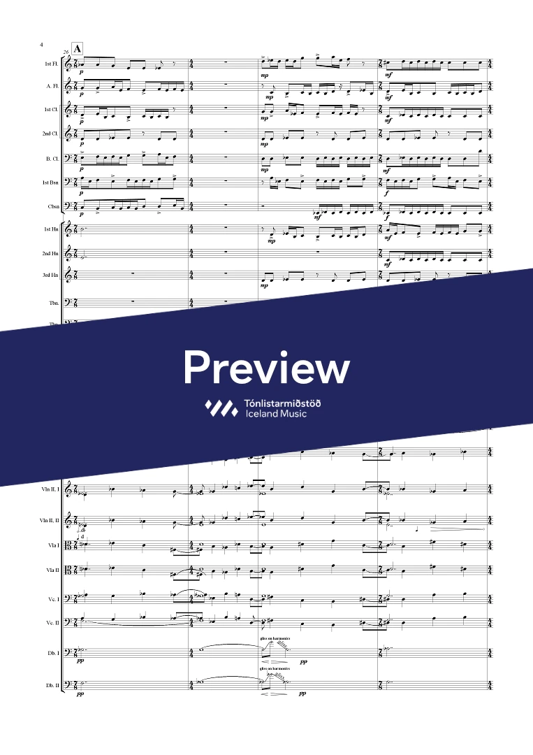 Instrumentation 1(afl.) 0, 3(bcl.) 2(cbsn) - 3,0,2,0 - perc. - str.