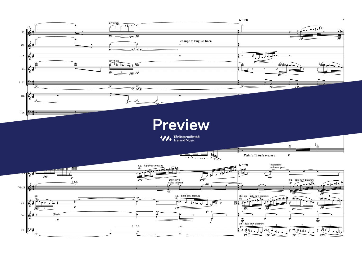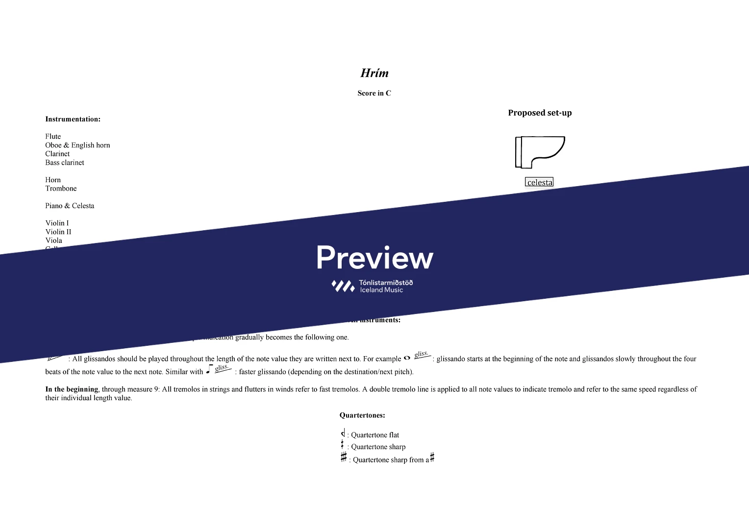 InstrumentationFlute, Oboe, English horn, Bass Clarinet, French Horn, Trombone, Piano, Celesta, Violin, Viola, Cello, Double Bass