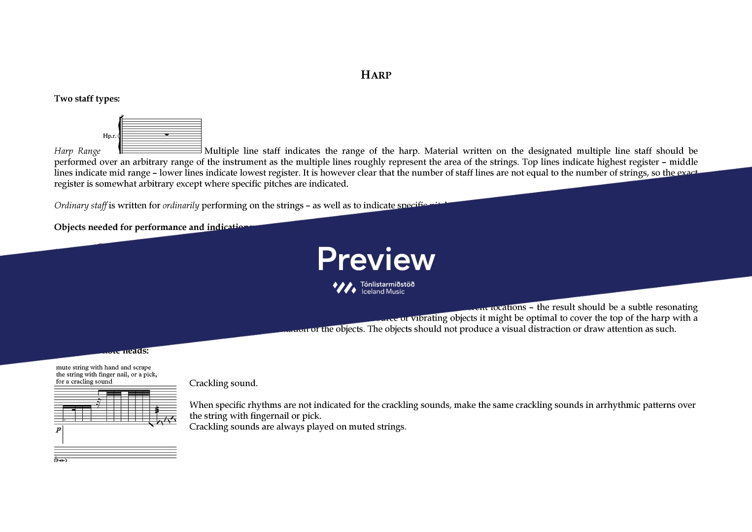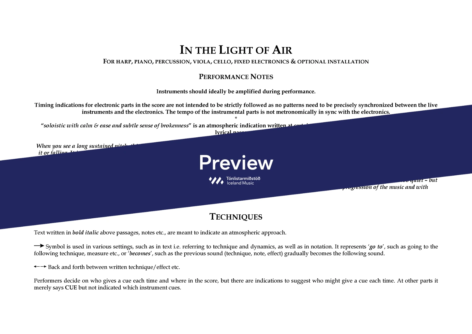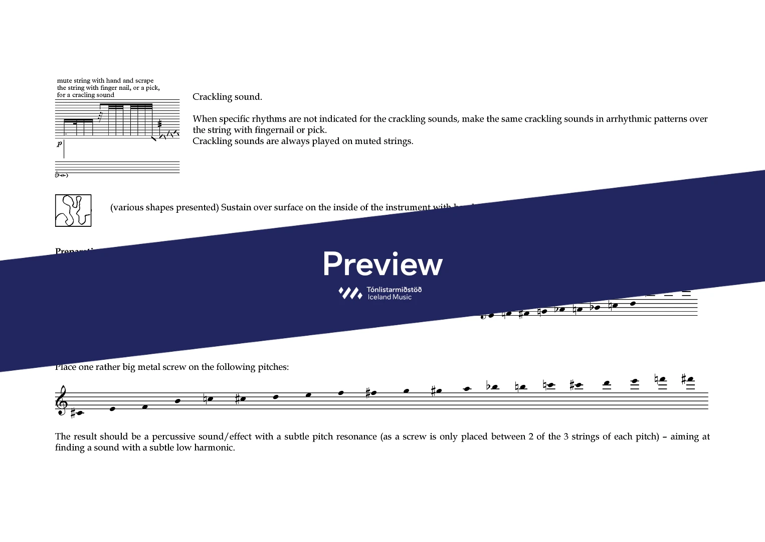 Description: harp, prepared piano, percussion, viola, cello & optional installation