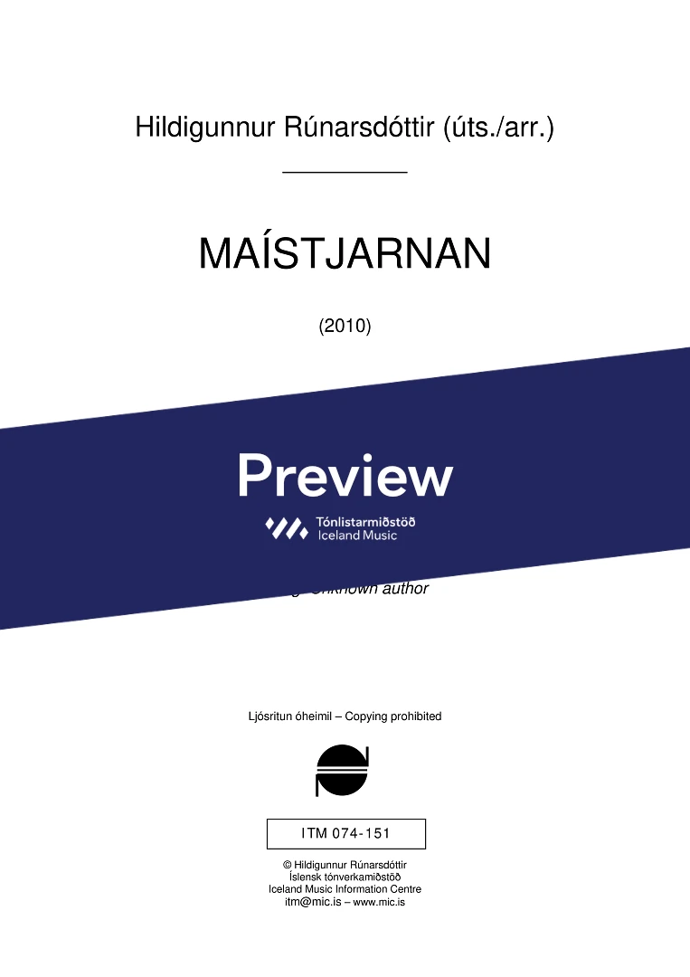 Icelandic folk song - Íslenskt þjóðlag, Anon. Höfundur óþekktur, Jón Þórarinsson