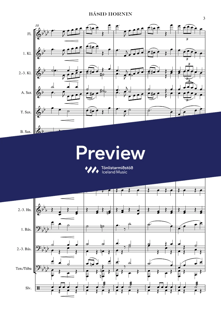 2.1.3.0. - 2 Asax. Tsax. Bsax. 2 Cornet/Trumpet. 3 EsHorn/FHorn. THorn. 3 Trbn. BarHorn. 2 Tuba - percussion
