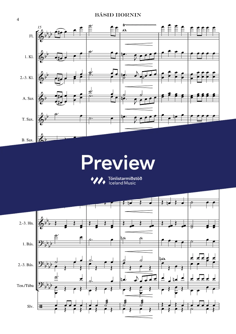 2 (picc). 0.4 (1 Es). 3 (Es). - 2 Cornet. 2 TrUmpet. 3 Horn (Es). 3 Trbn. 2 THorn. BHorn. 2 Tubes - percussion