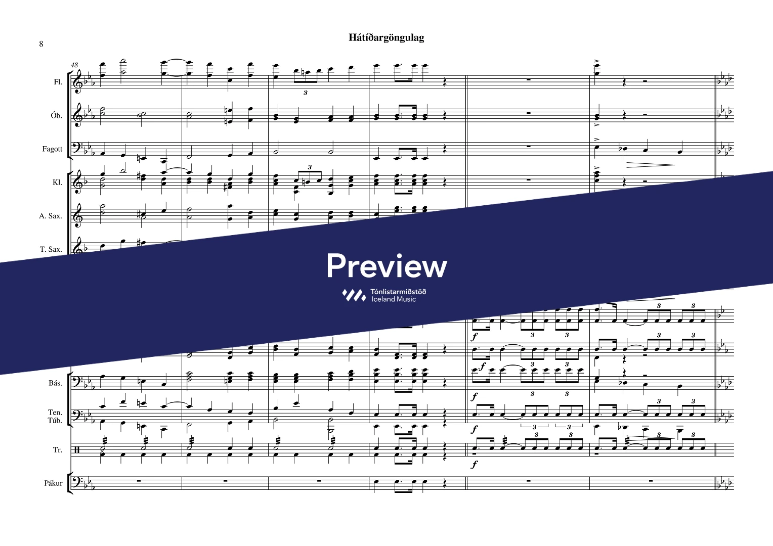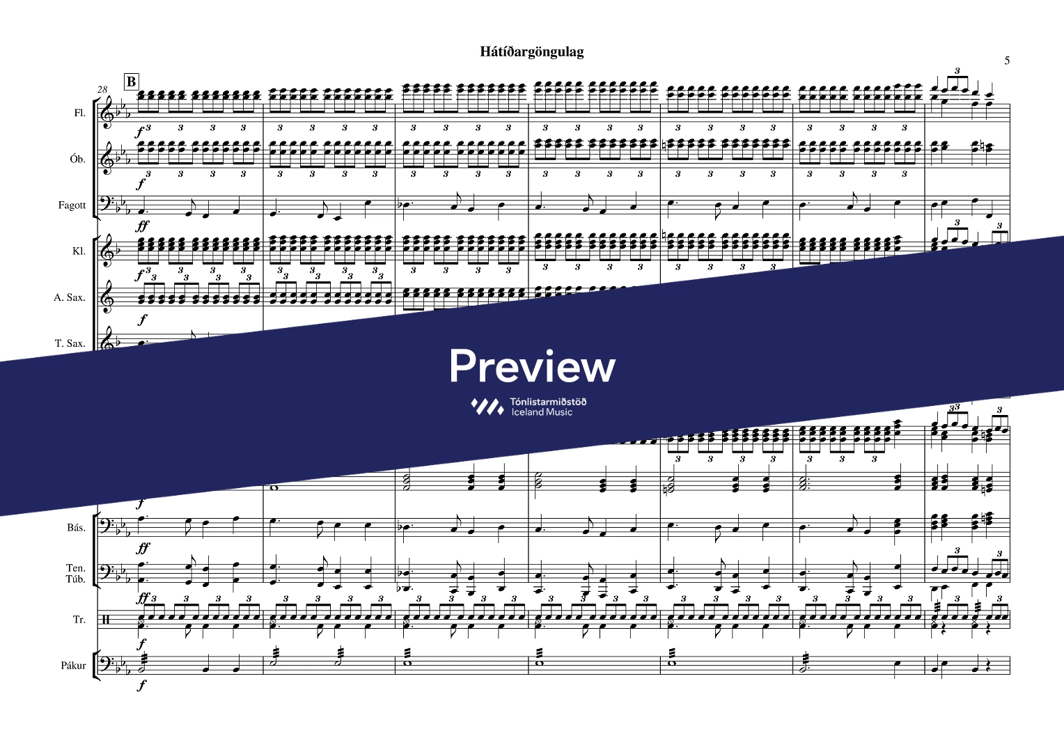 Instrumentation 2fl.2ob.3cl.2altsax.tensax. - 3trp.3hrn.barhrn.3trb.bass.sntr.cym.basstr.tim