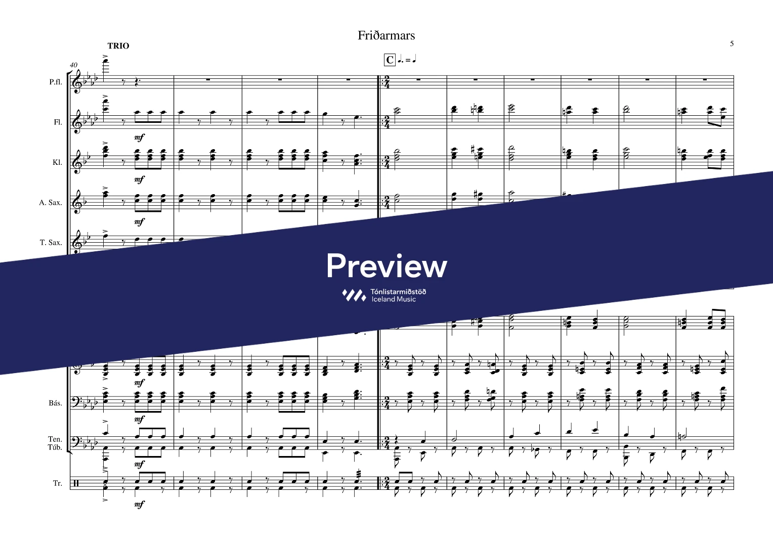 Instrumentation 2 (picc).1.2.0. - 2 Asax. 1 Tsax. 1.Bsax. - 3 cornet/trumpet. 3 FHorn/EsHorn. 3 Trbn. THorn. Tubes - percussion