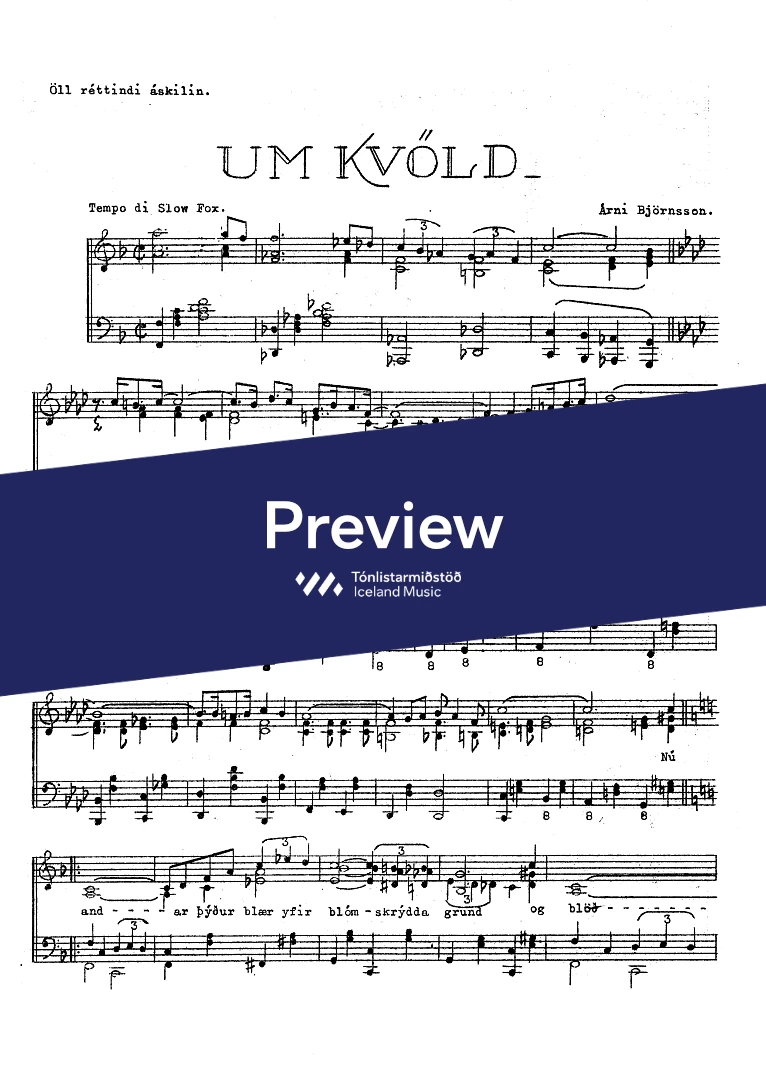 Text sampleNú andar þýður blær yfir blómskrýdda grund