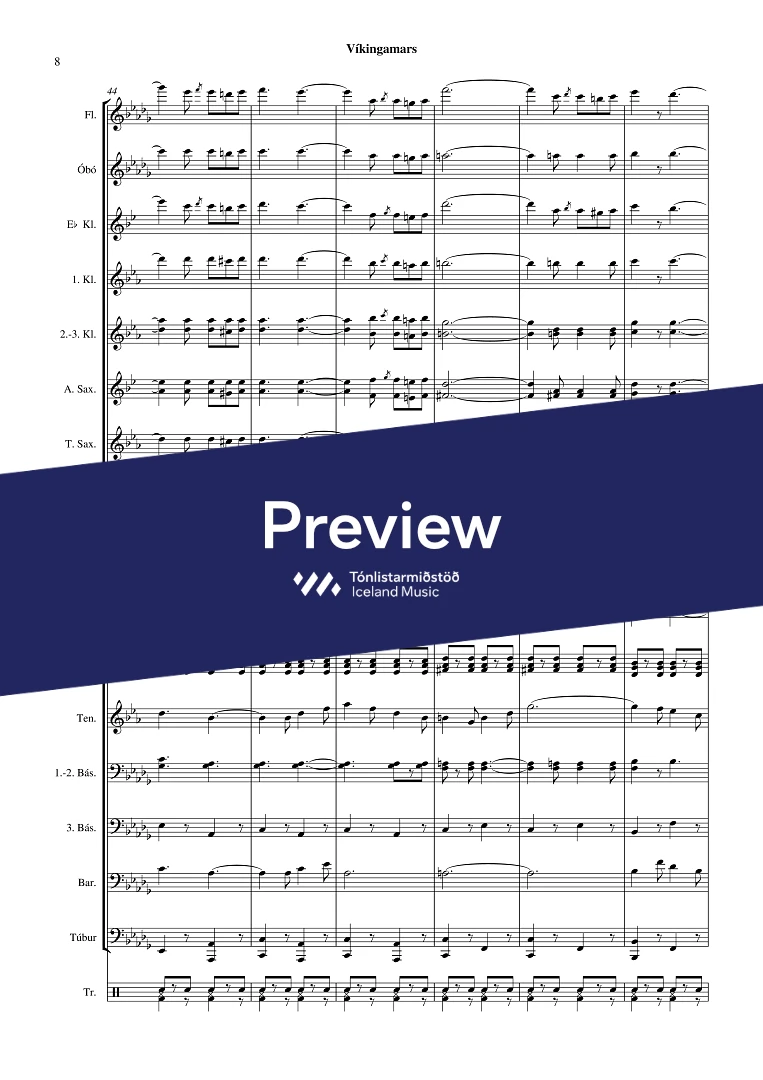 2 (picc). 0.4 (1 Es). 3 (Es). - 2 Cornet. 2 TrUmpet. 3 Horn (Es). 3 Trbn. 2 THorn. BHorn. 2 Tubes - percussion