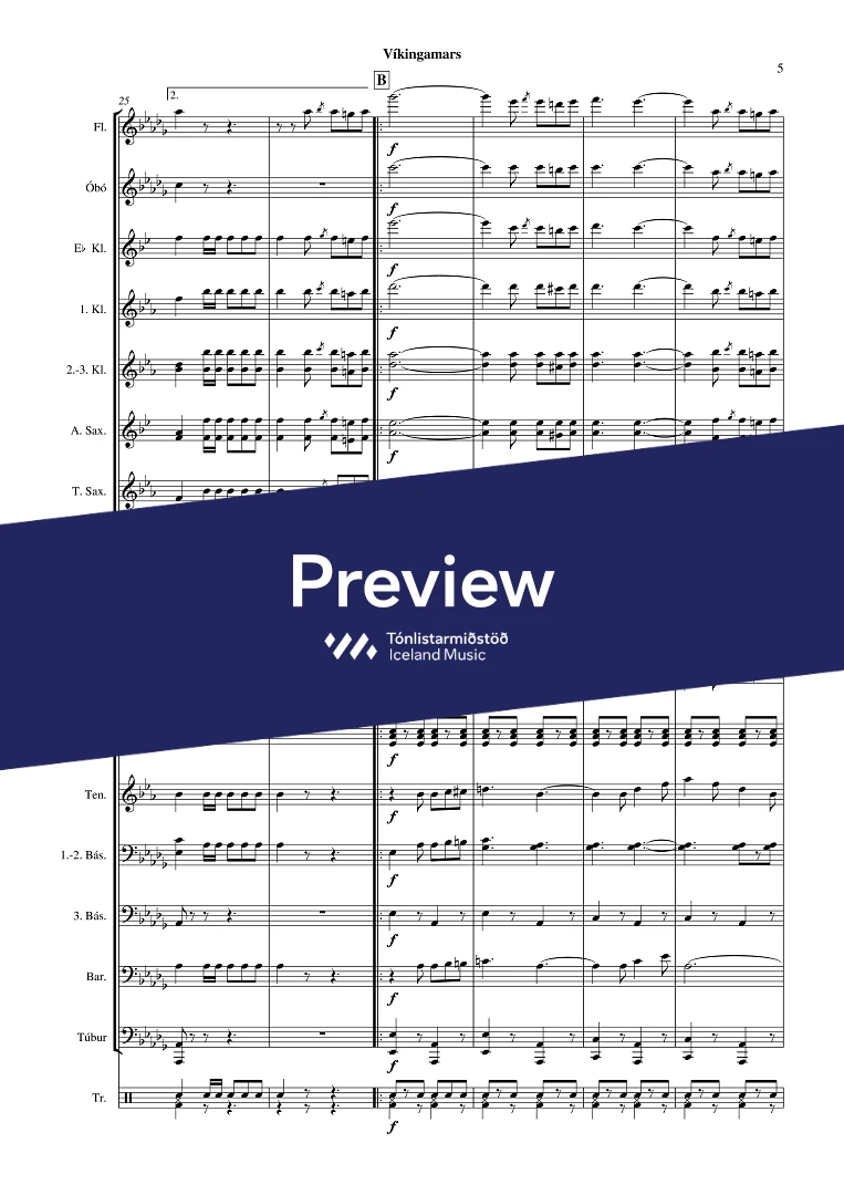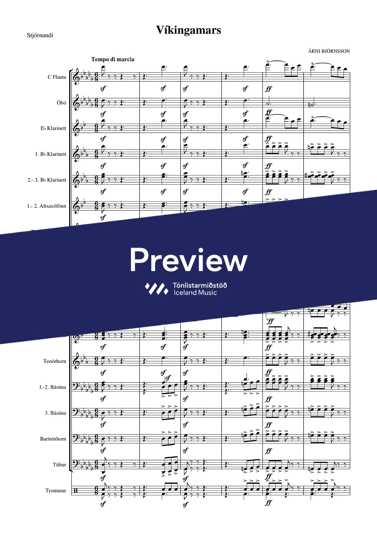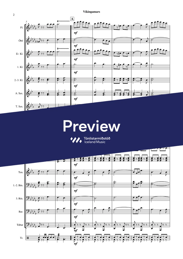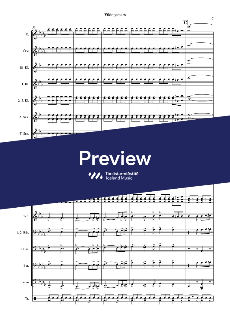 Instrumentation 2(picc).1.3+EsCl.0. - 2 Asax. Tsax. Bsax. 2 Cornet. 2 Trumpet. 3 Es Horn/F Horn. THorn.BHorn.3 Trbn. - percussion