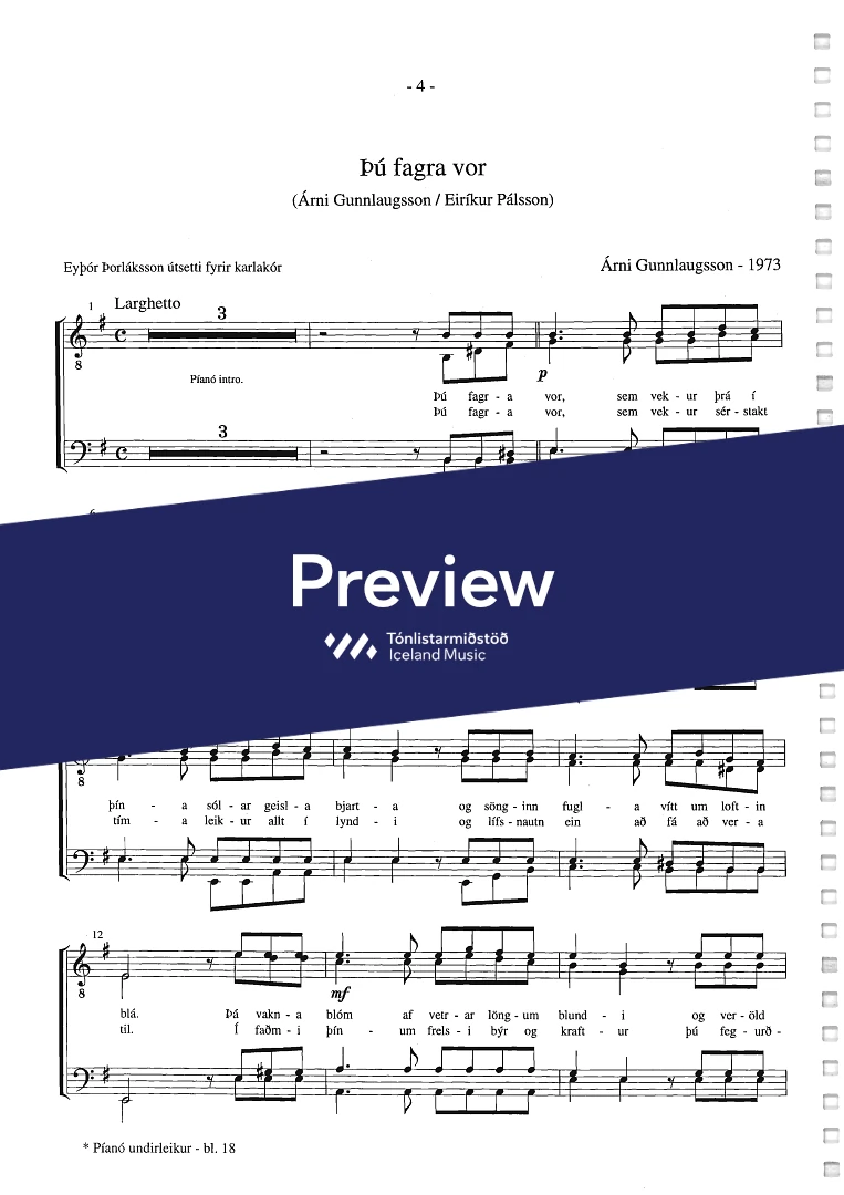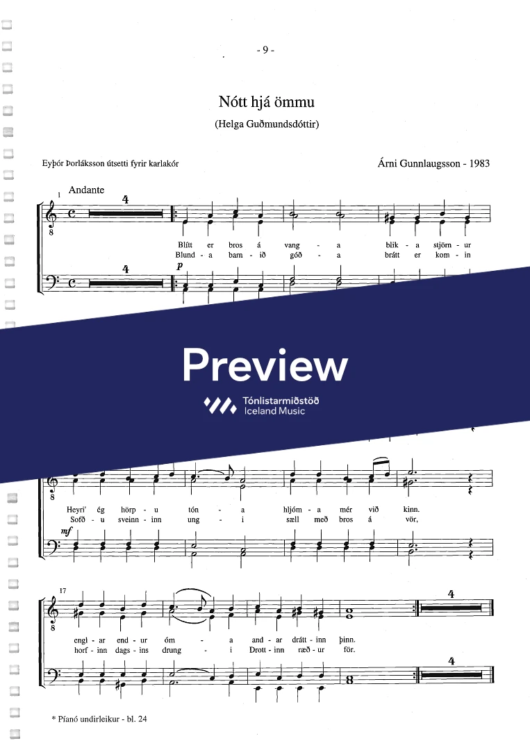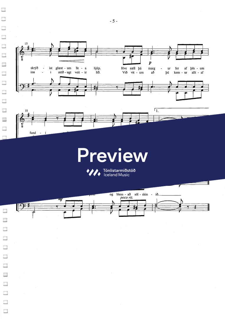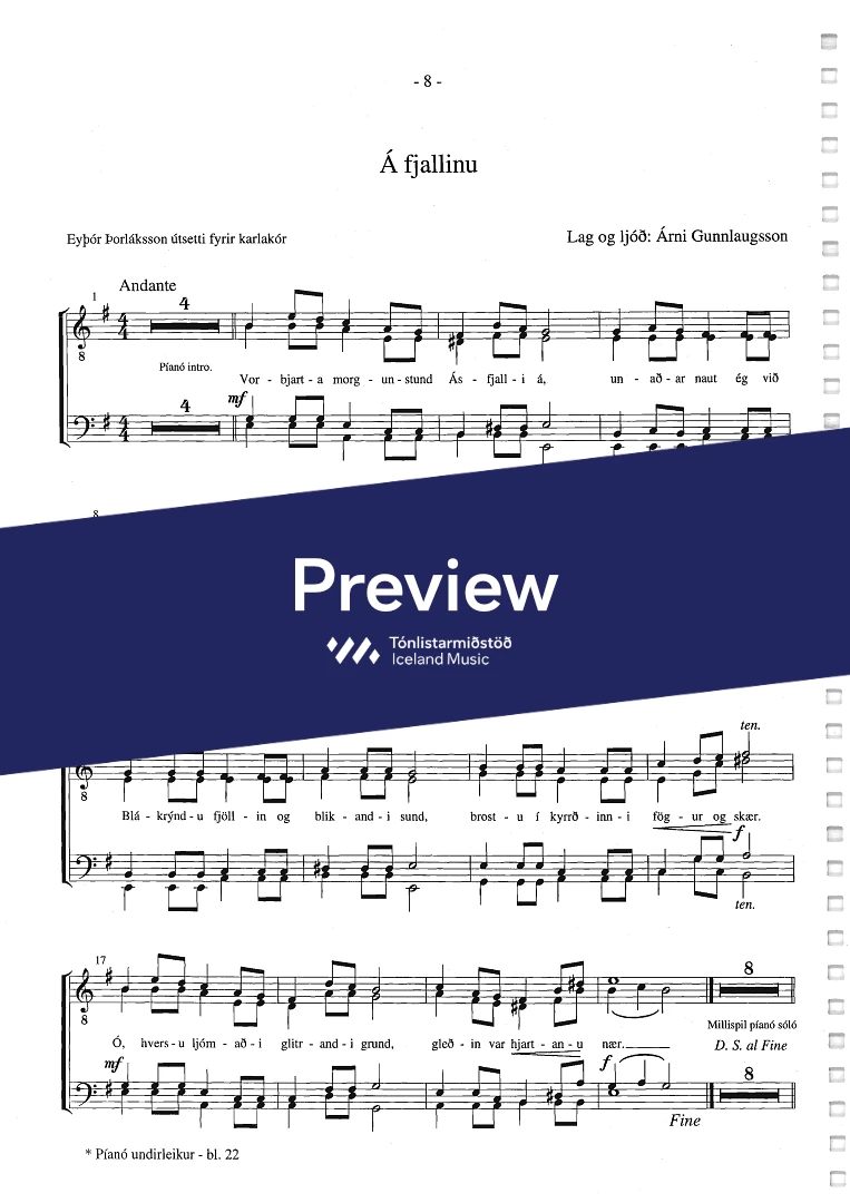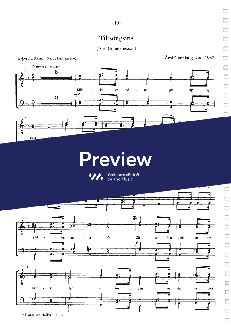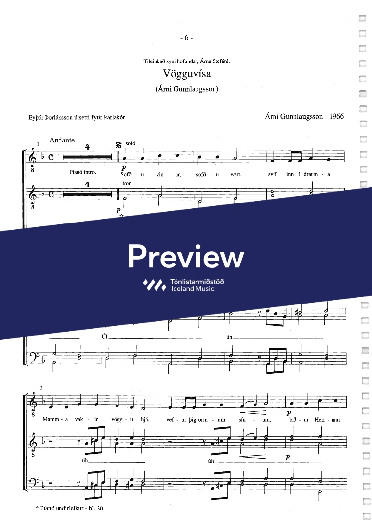 Composer Árni Gunnlaugsson Year composed2008 Categories A cappella choir InstrumentationPiano, Male choir Catalogue no.759-902 ISMN-