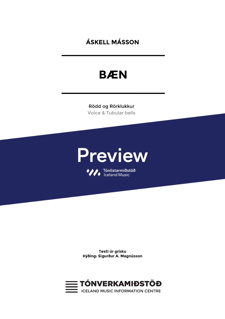 InstrumentationPercussion, Tubular bells, Voice, Alto, Countertenor