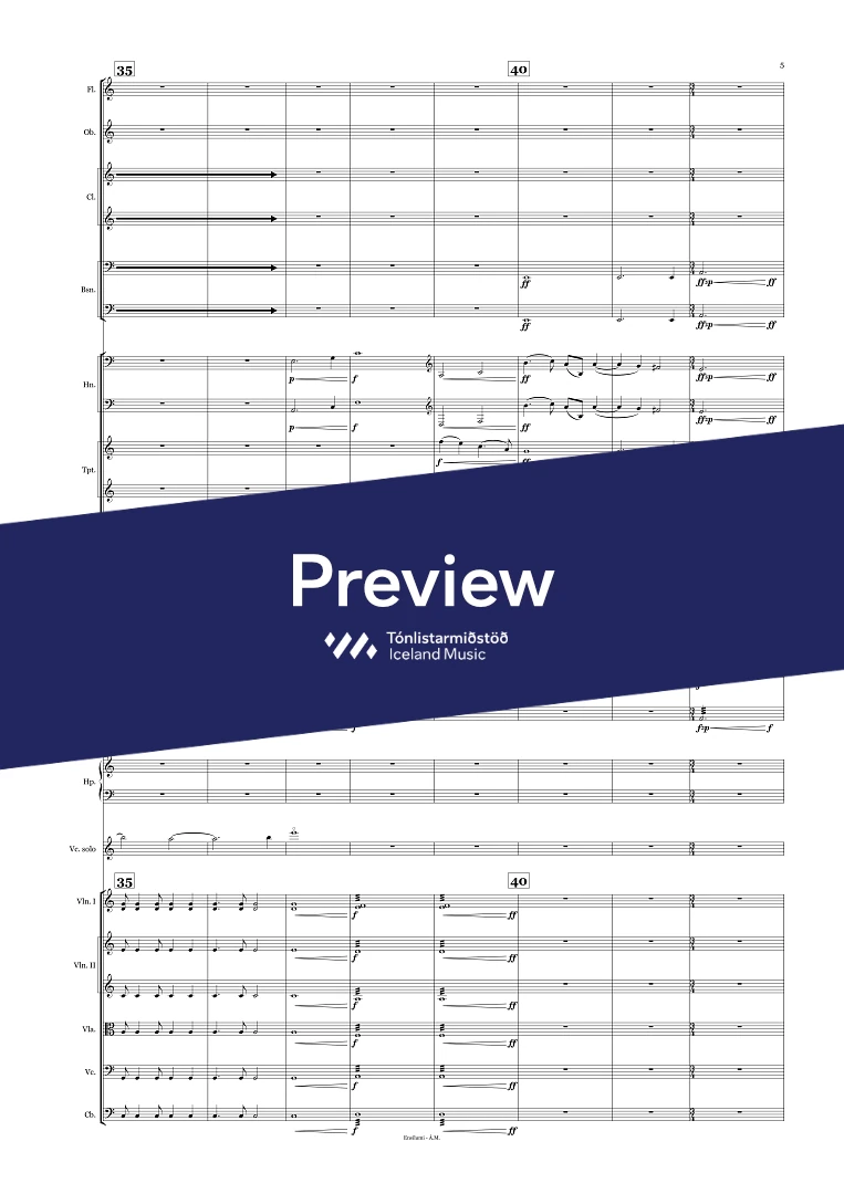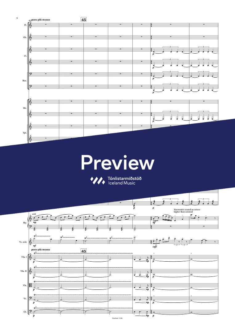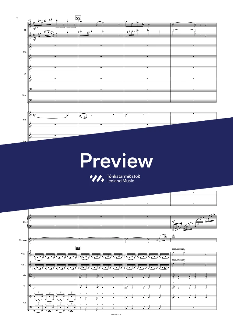 2.2.3(Bcl).3(Cbsn) - 4.4.3.1 - 3(Perc) - Timp. - Cel. - Harp, - Strings