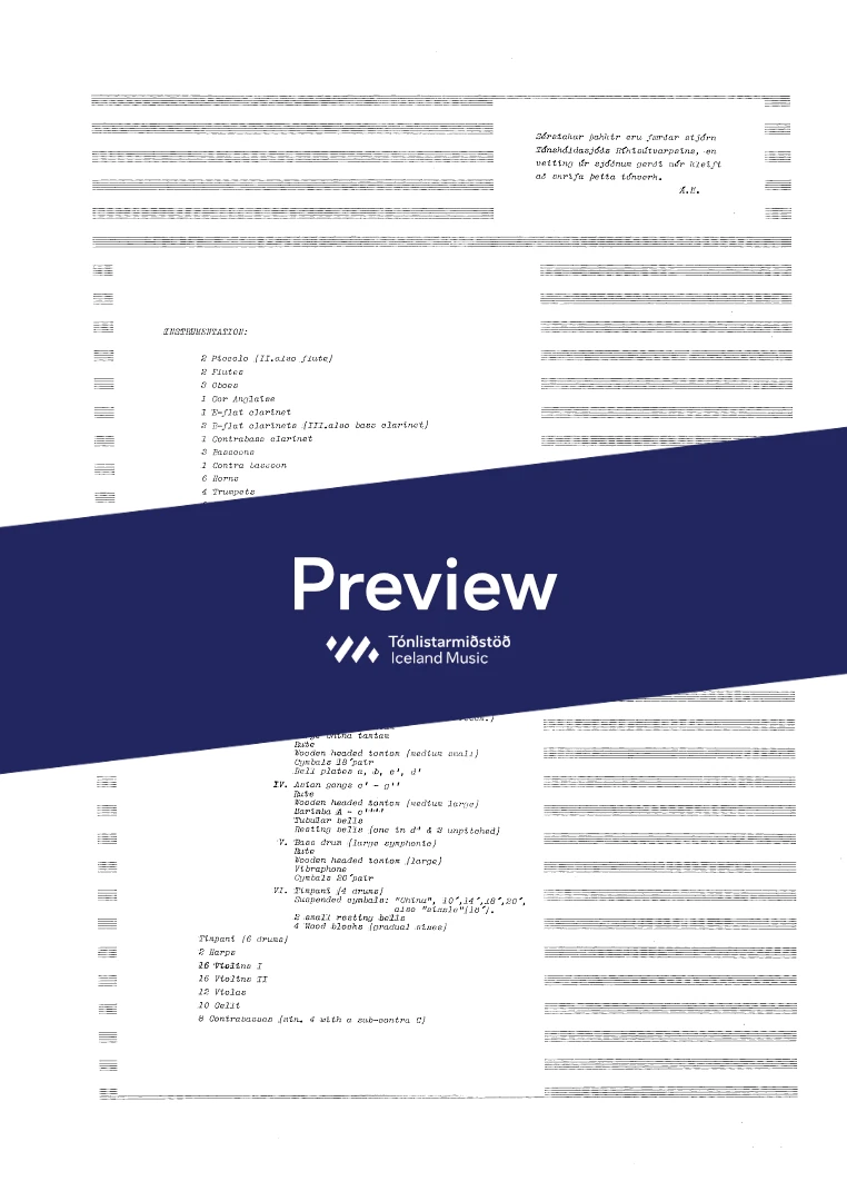 Instrumentation 2(pcc.2),3(c-ang),5eb-cl. bcl. cb.cl.)4(cfag) - 6,4,5,2 - perc.(6) - tmp. - hp.(2) - str.