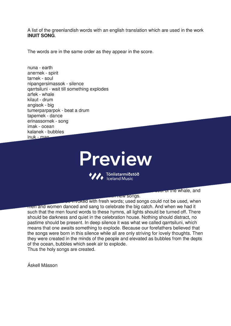 The work was also partially funded by the Composers' Fund of the Icelandic State Broadcasting Service