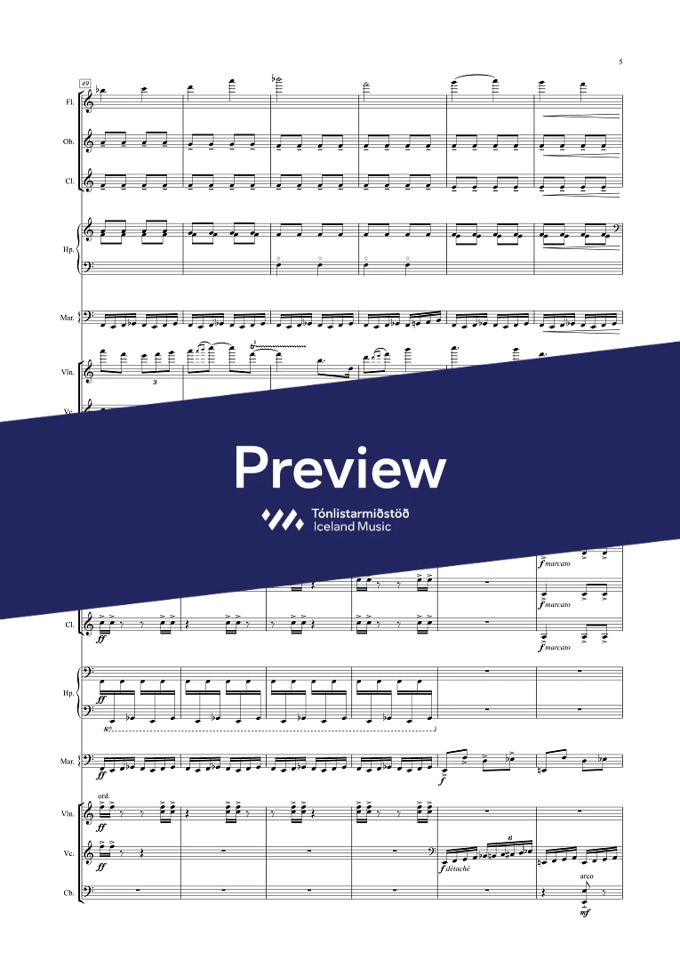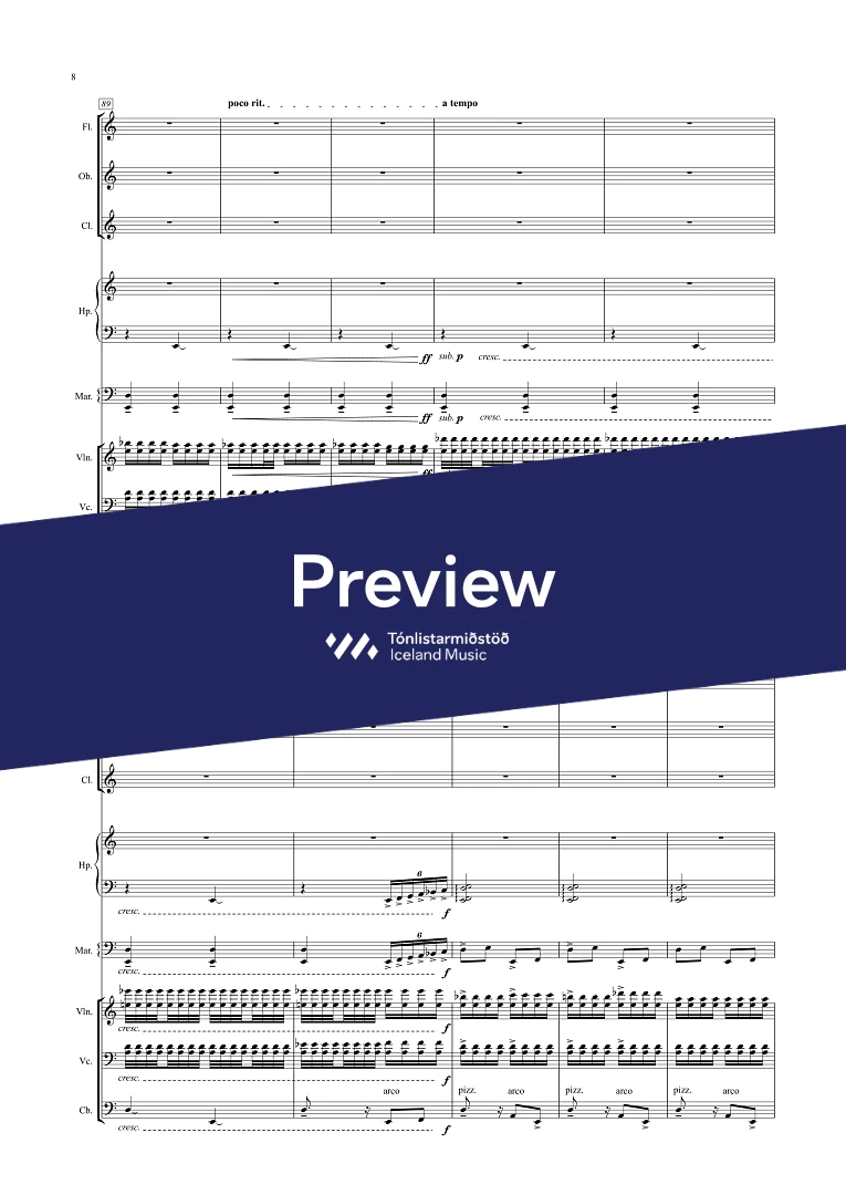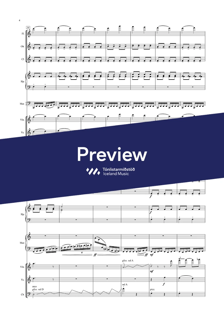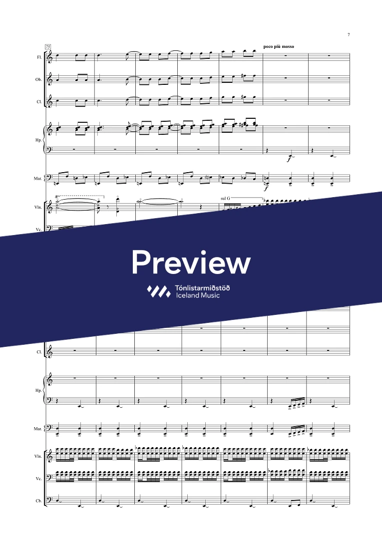 Instrumentation flute, oboe/cor-anglais, clarinet/bass-clarinet, harp, marimba/vibraphone, violin, cello, double-bass