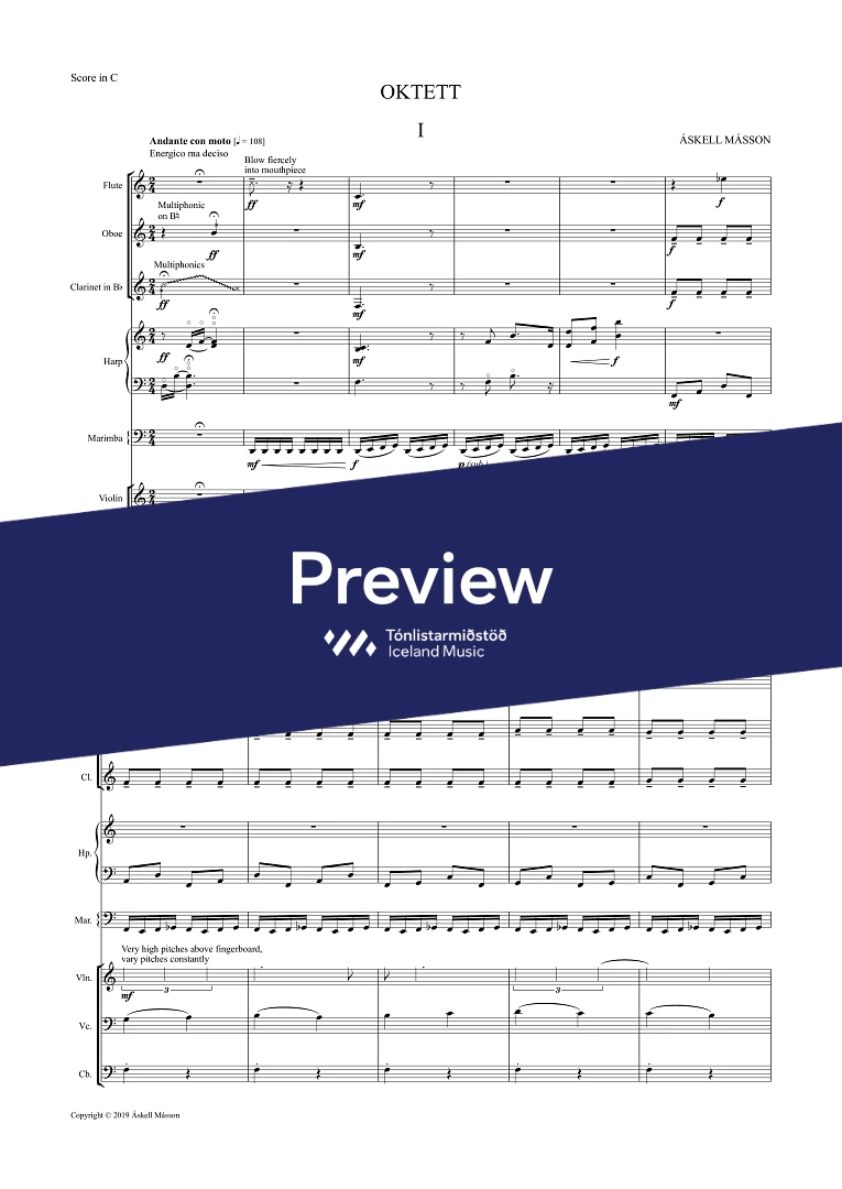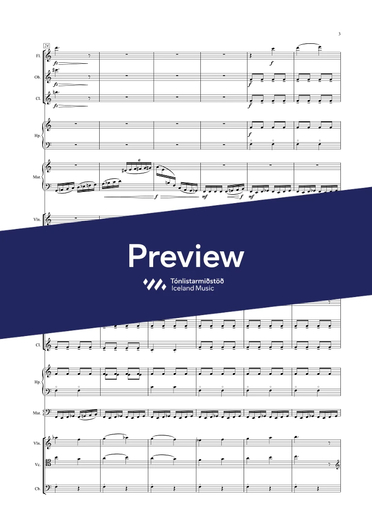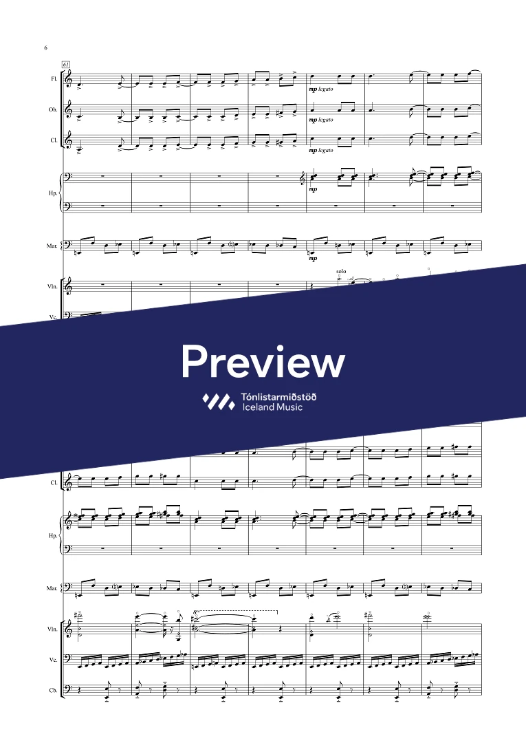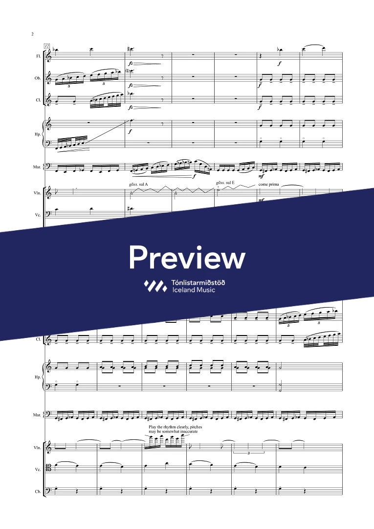 Instrumentation flute, oboe/cor-anglais, clarinet/bass-clarinet, harp, marimba/vibraphone, violin, cello, double-bass