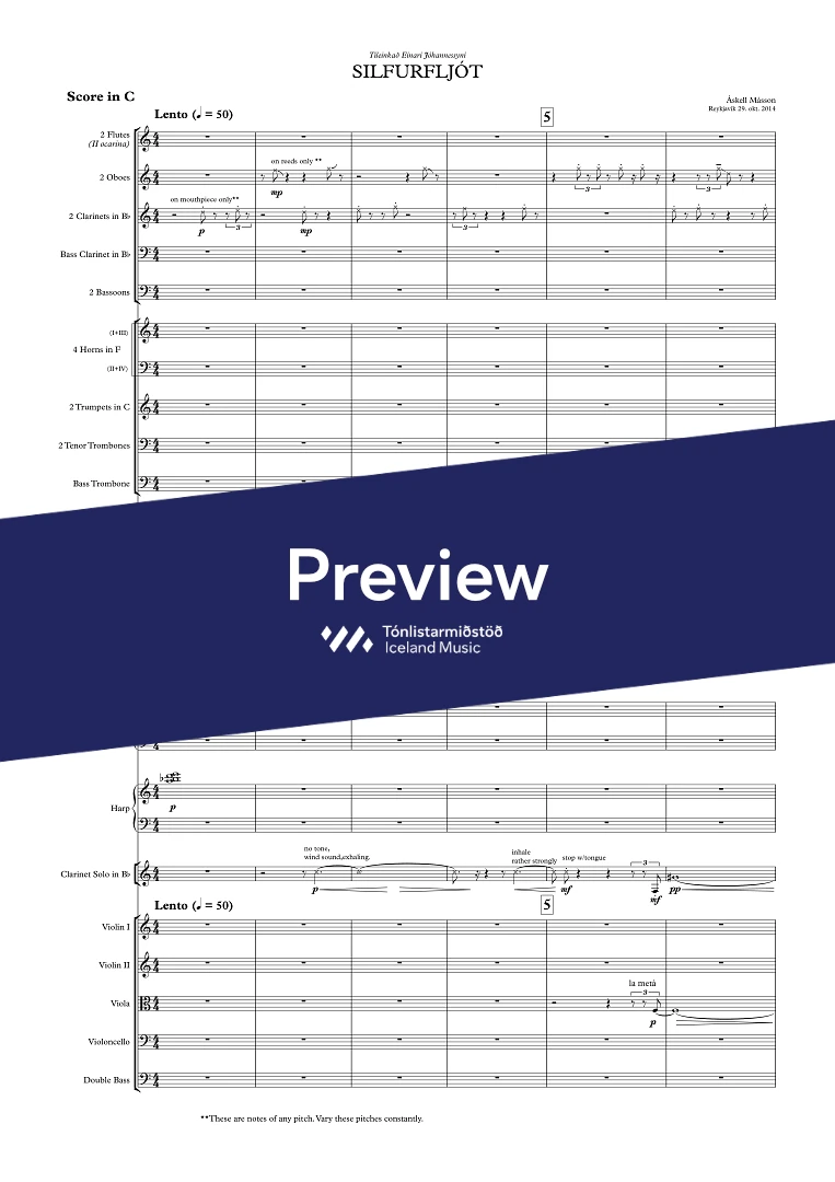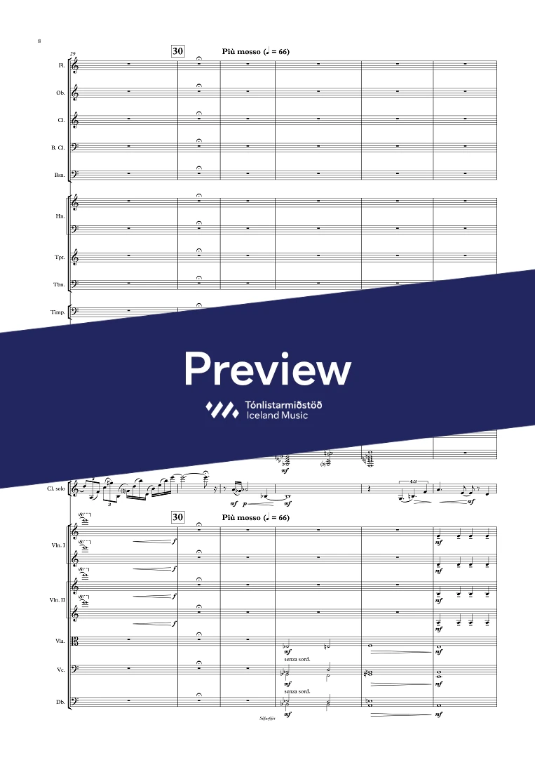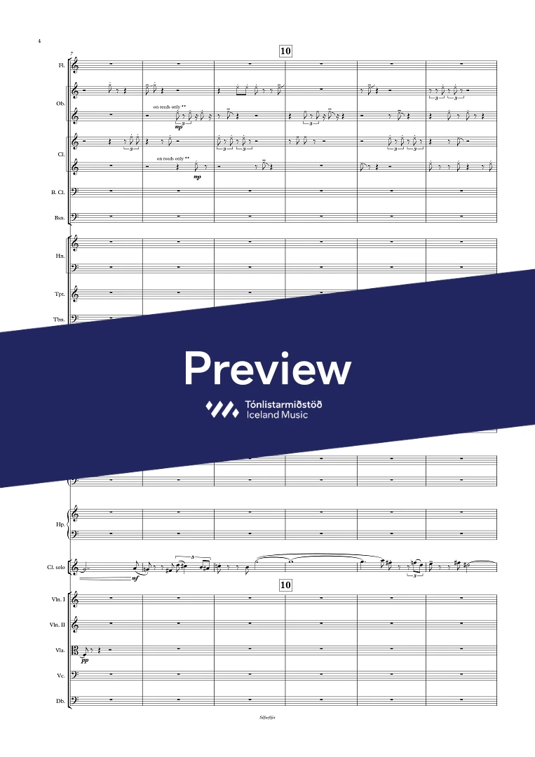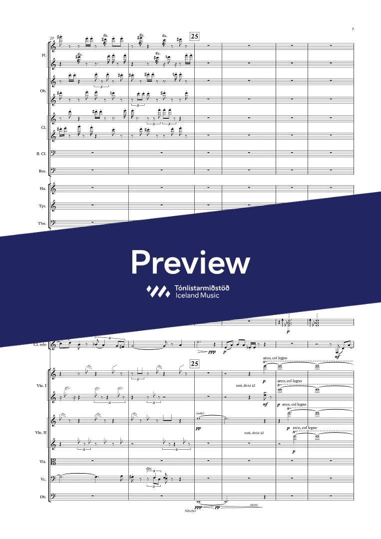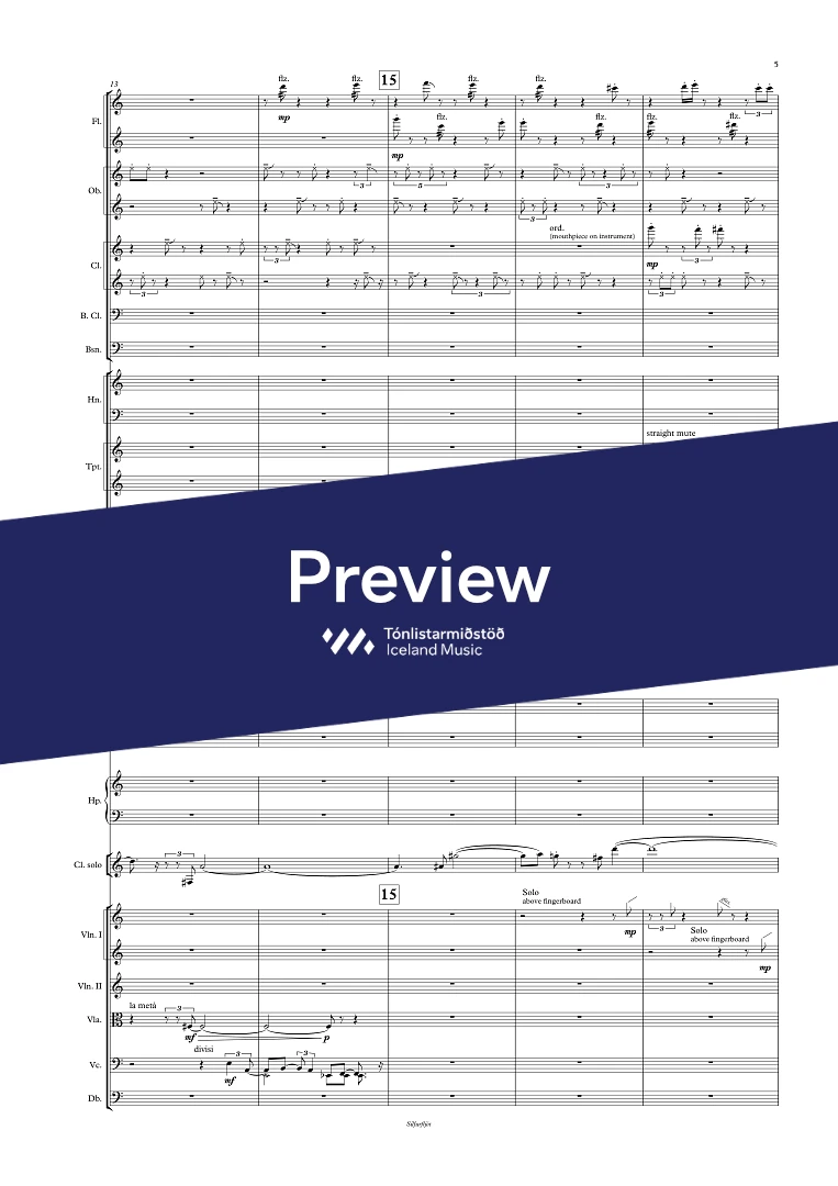 2,(ocarina)2,3 (Bcl.) 2 - 4,2,3 - cel. - hp. - perc.(3) - tmp. - clar. solo - str.