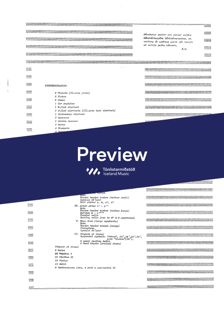 Instrumentation 4.4.5.4-6.4.5.2 - perc.(6).- timp.- hp(2) -. strings