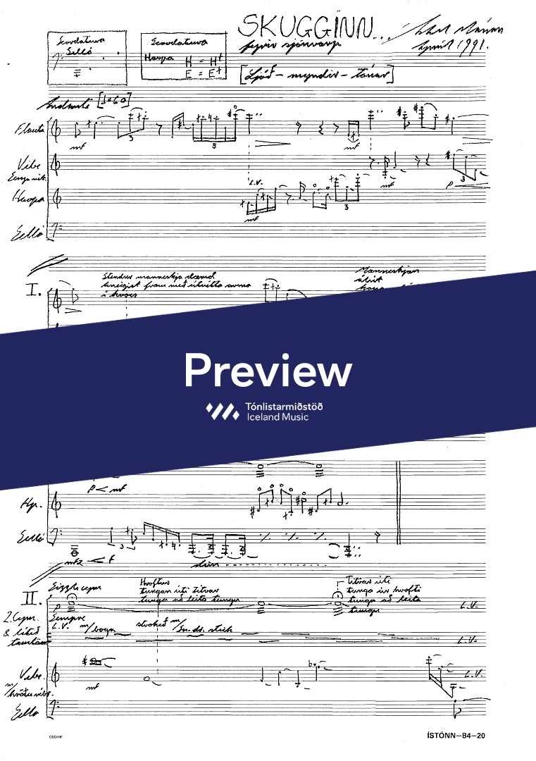 2.2.3(Bcl).3(Cbsn) - 4.4.3.1 - 3(Perc) - Timp. - Cel. - Harp, - Strings