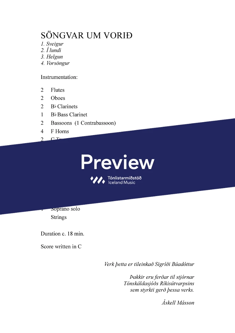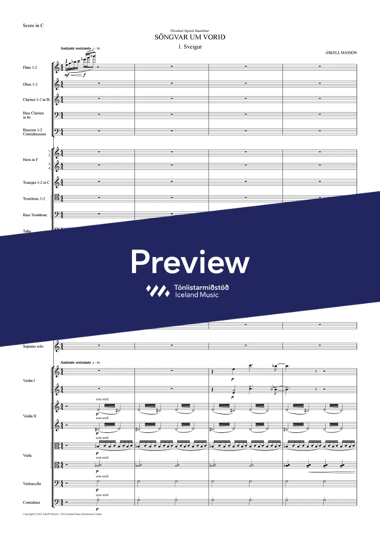 2fl.2ob.2cl.Bcl.2bsn. - 4hrn.2trp.2tentrb.Btrb.Tuba - 2perc.tim.harp.cel.str.sopr.