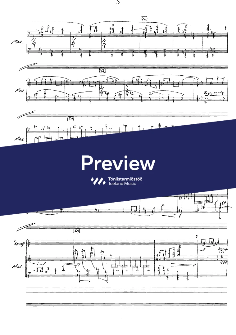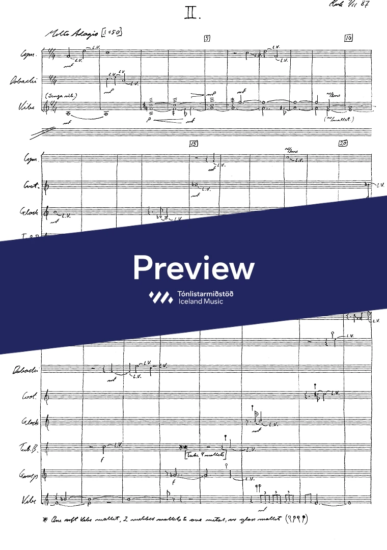 2.2.3(Bcl).3(Cbsn) - 4.4.3.1 - 3(Perc) - Timp. - Cel. - Harp, - Strings