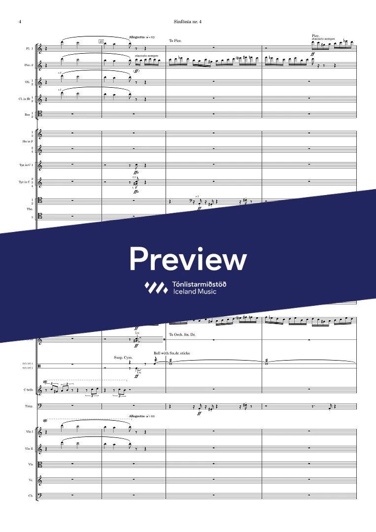 Instrumentation 2(picc.).2.2.2 - 4.4.4.euph. tba. - perc.(4) - tmp. - cel. - str.