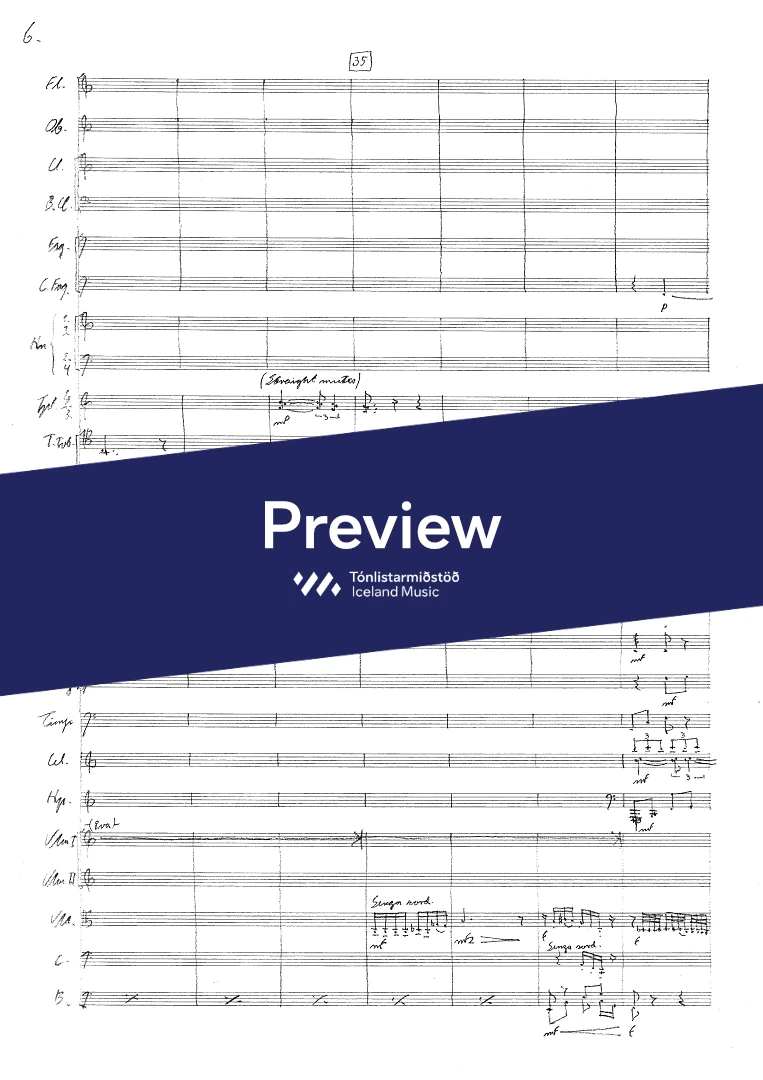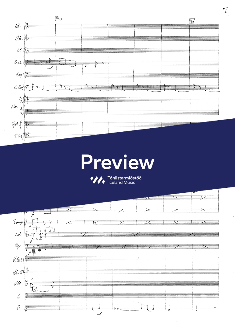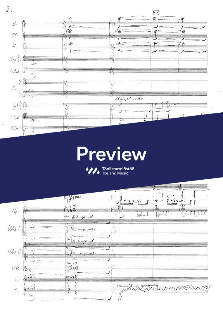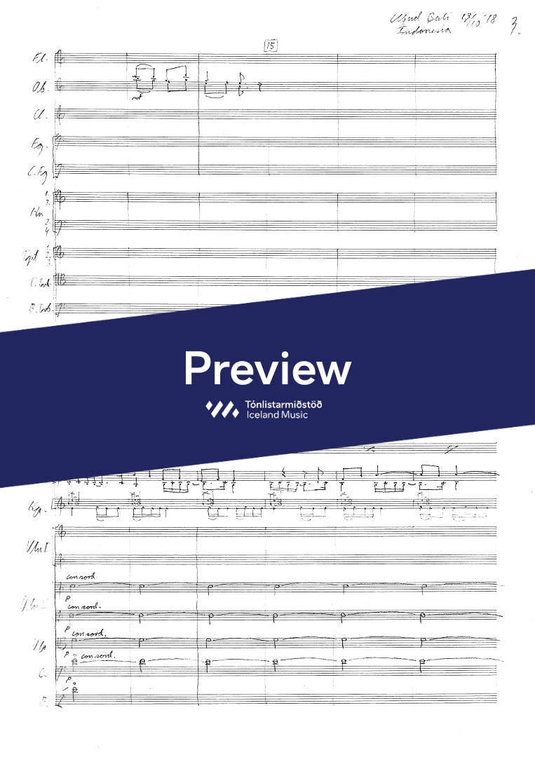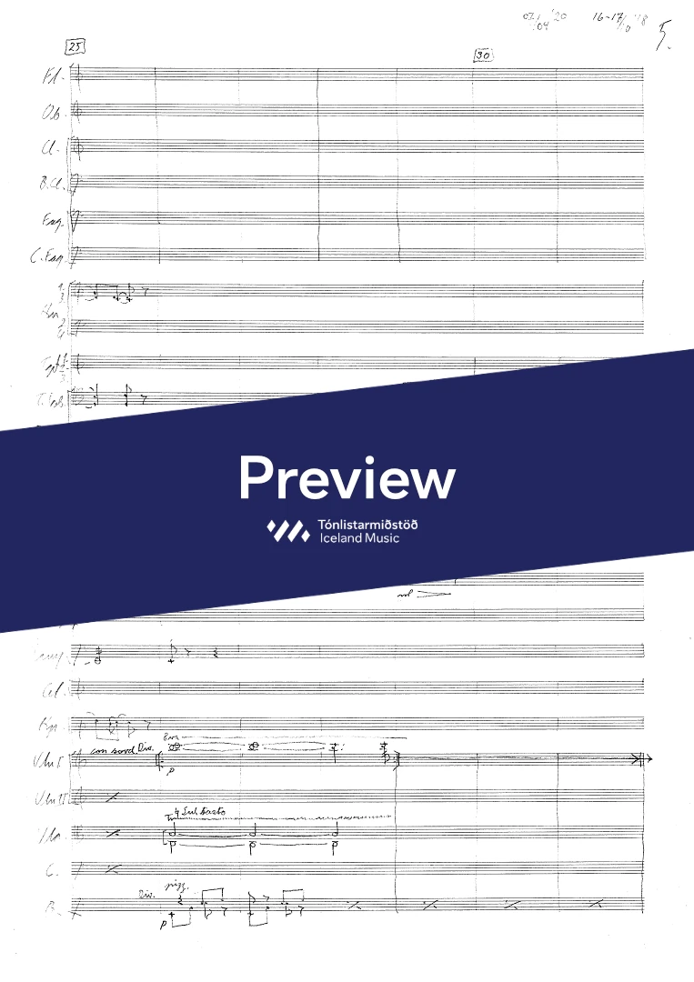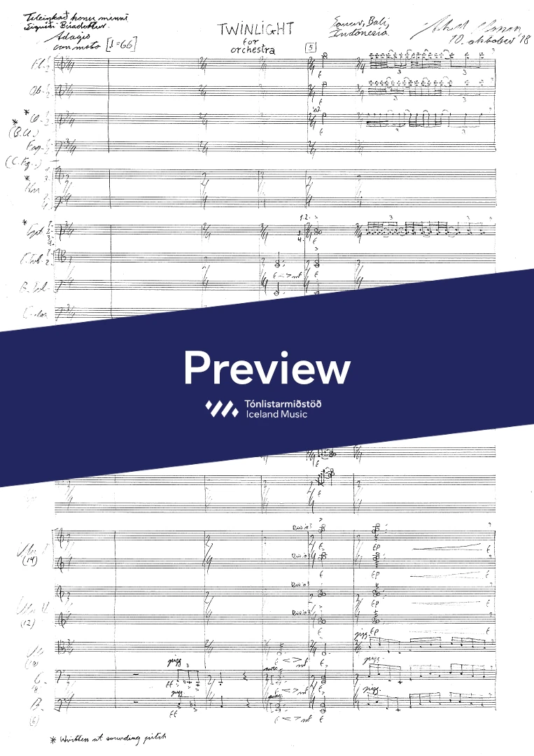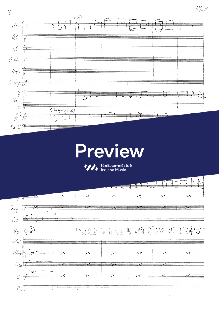 Instrumentation 2.2.3(Bcl).3(Cbsn) - 4.4.3.1 - 3(Perc) - Timp. - Cel. - Harp, - Strings