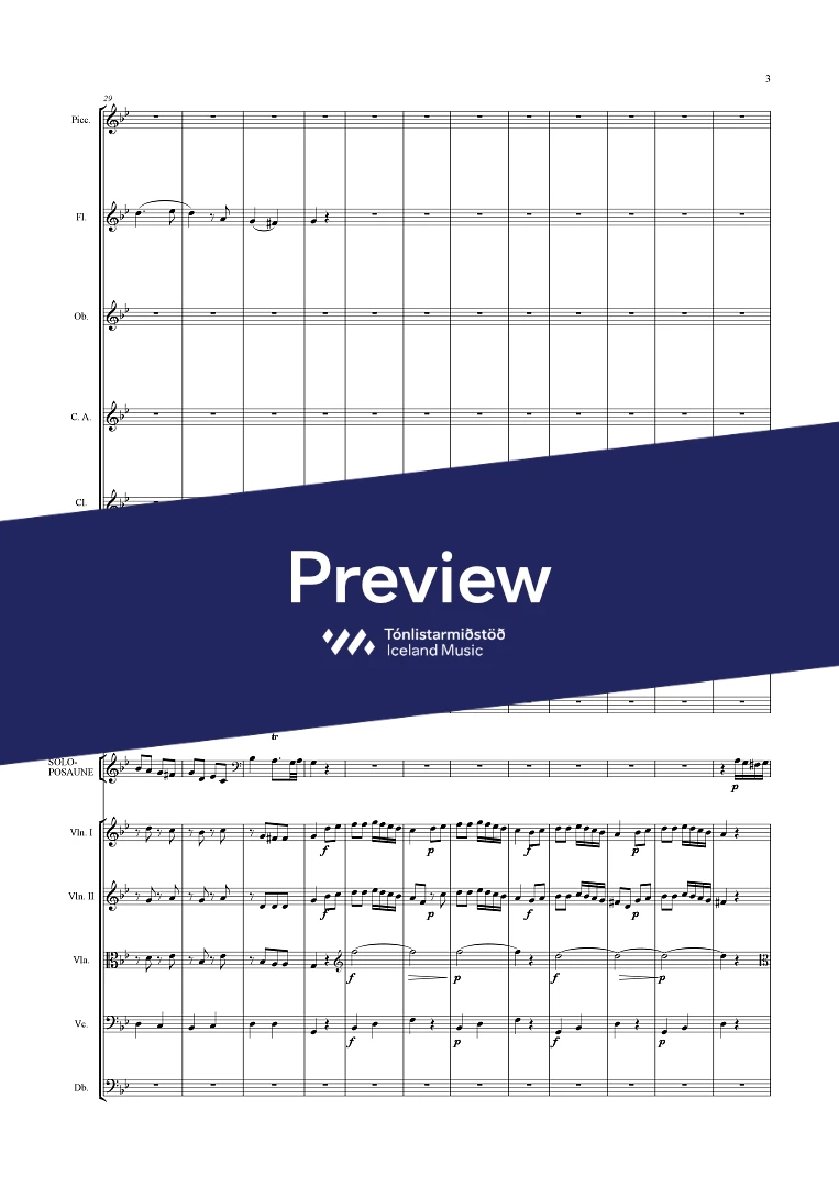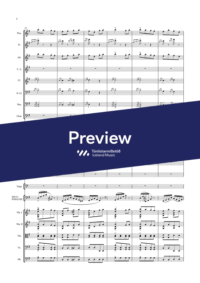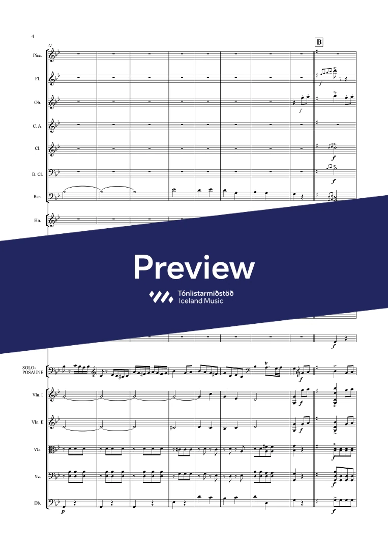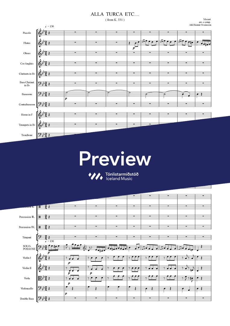 picc. 2,2,1,2, C.fag. - 2,2,1,1 - - hp. - pno. - perc. (4) tmp. solo trbn - str.