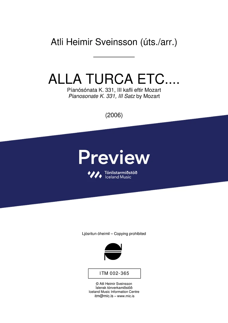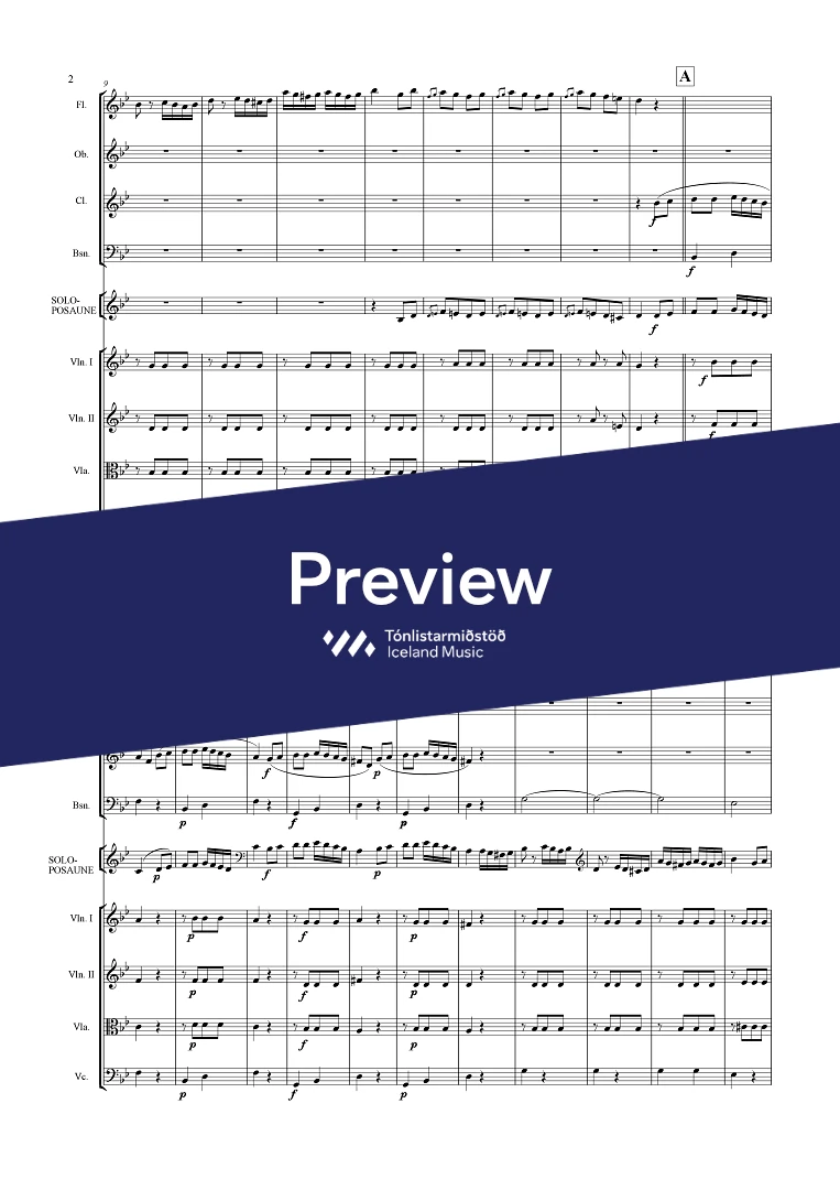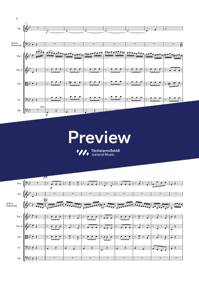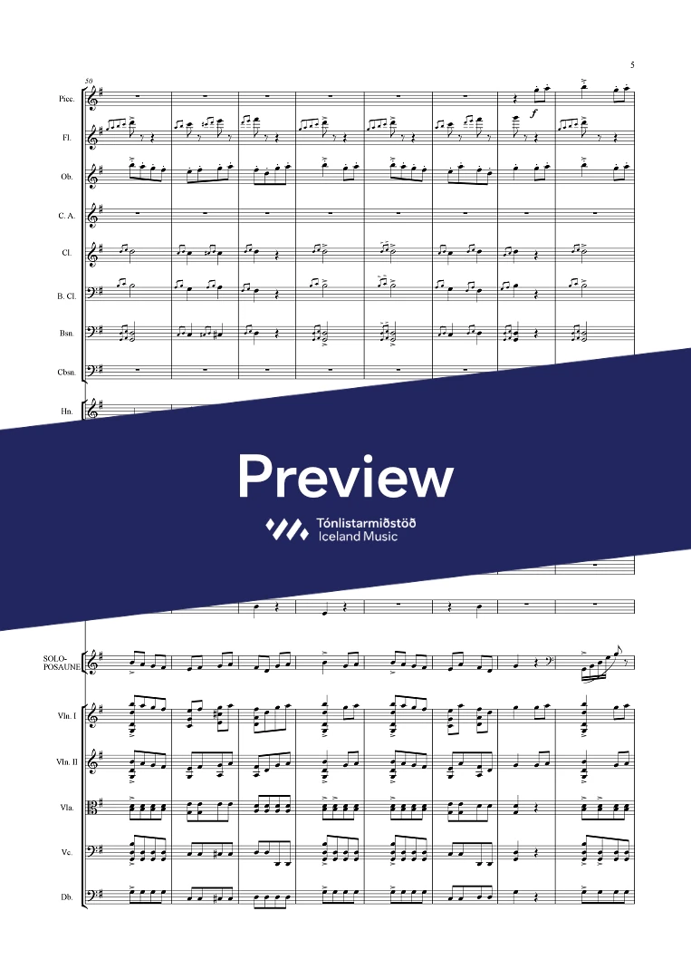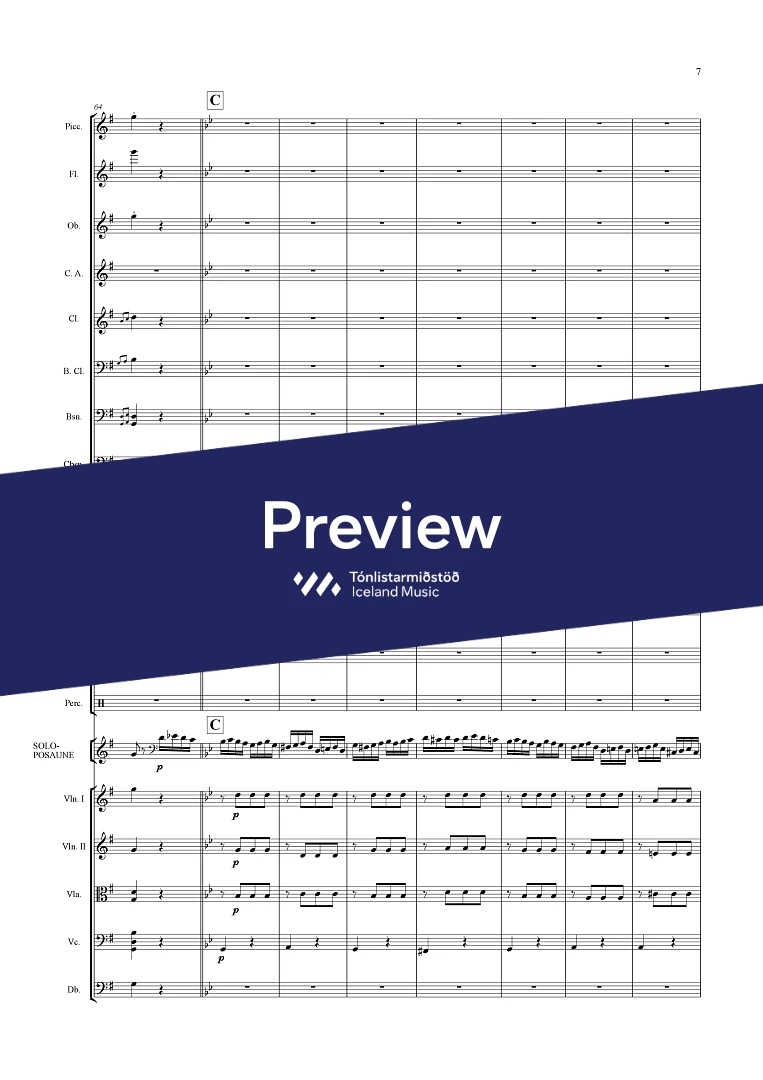picc. 2,2,1,2, C.fag. - 2,2,1,1 - - hp. - pno. - perc. (4) tmp. solo trbn - str.