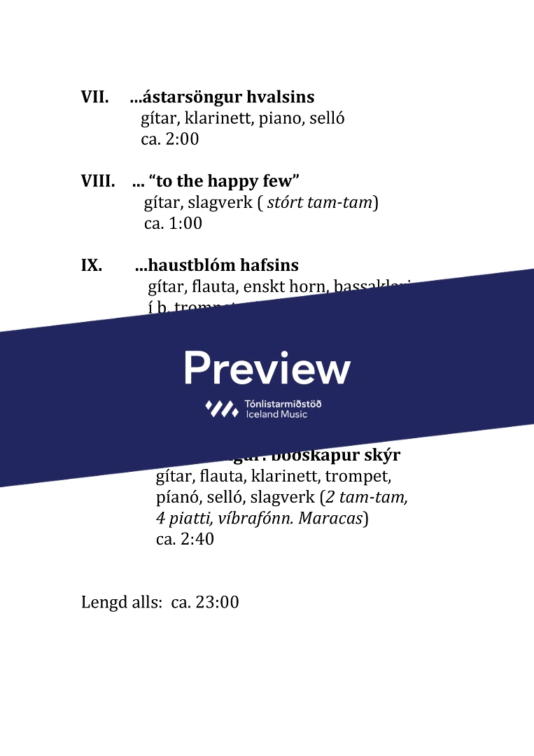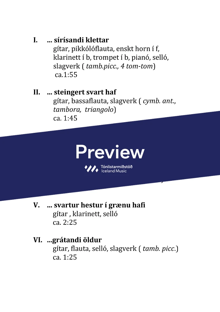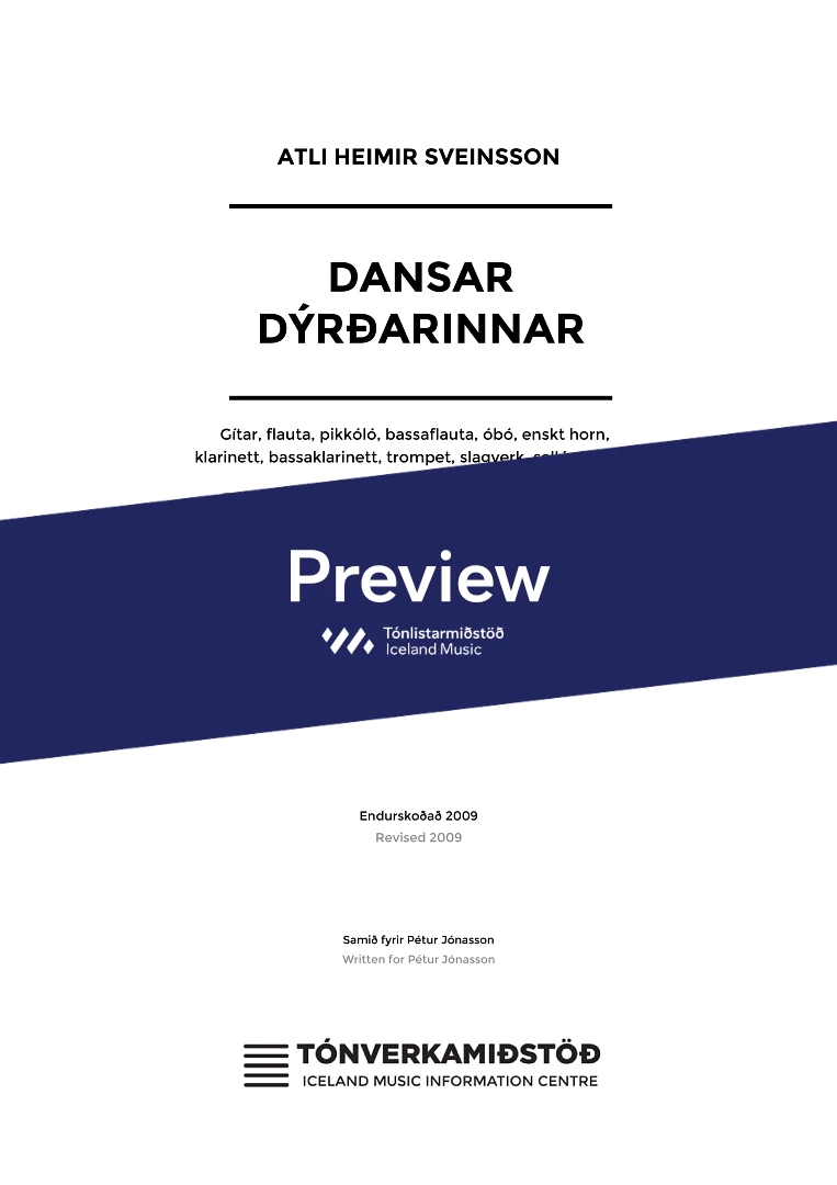 InstrumentationFlute, Piccolo Flute, Bass Flute, Oboe, English horn, Bass Clarinet, Trumpets, Percussion, Piano, Guitar, Cello