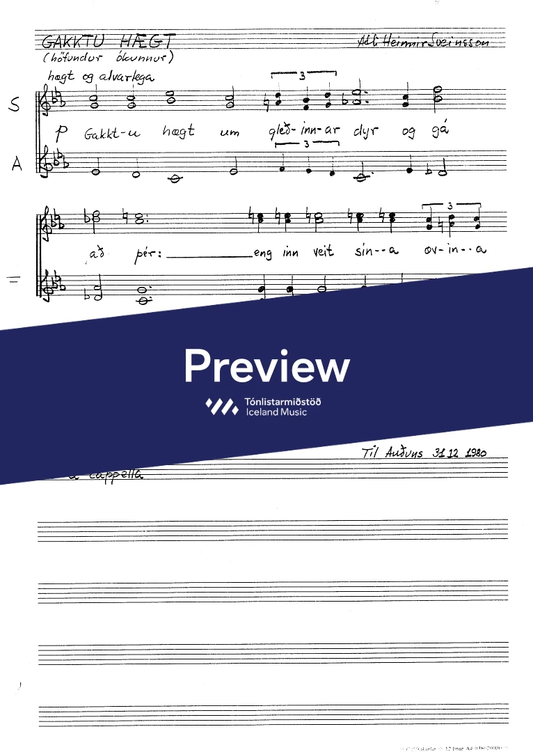 Text sampleGakktu hægt um gleðinnar dyr