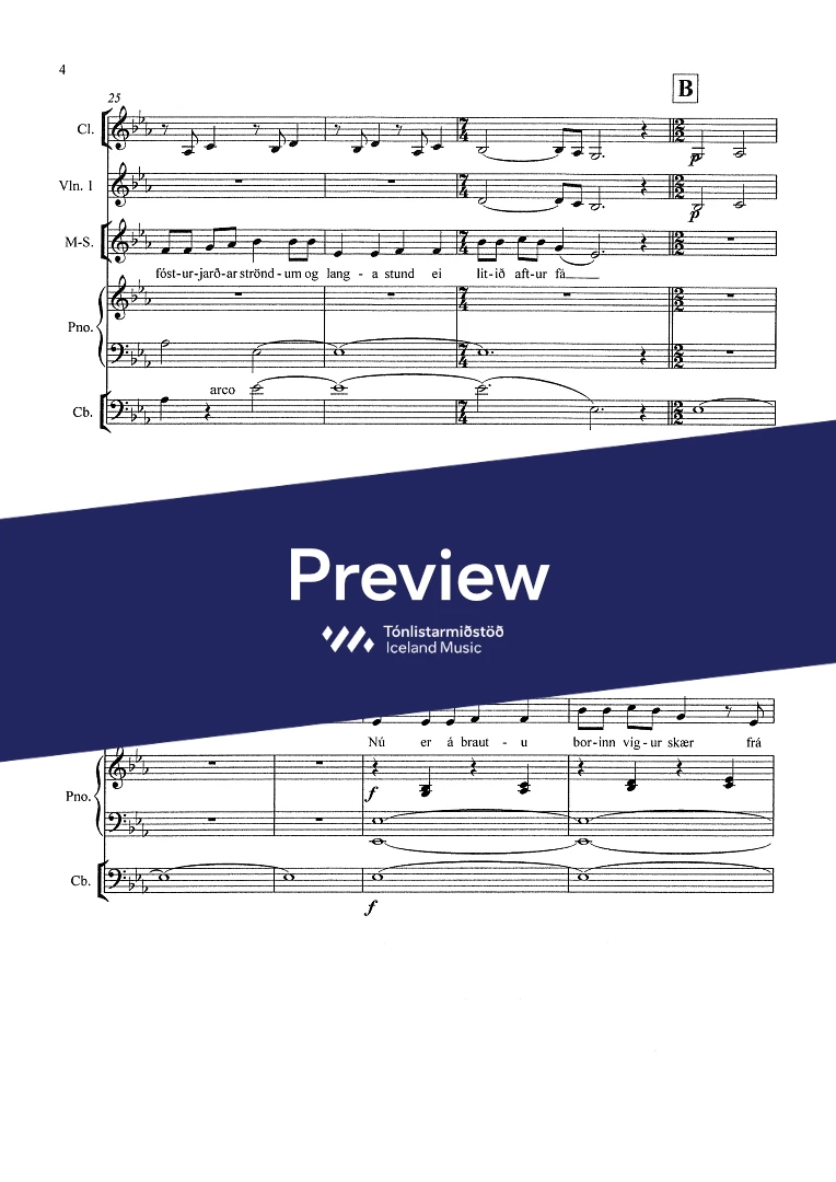 InstrumentationClarinet in Bb, Piano, Mezzo-soprano, Violin, Double Bass