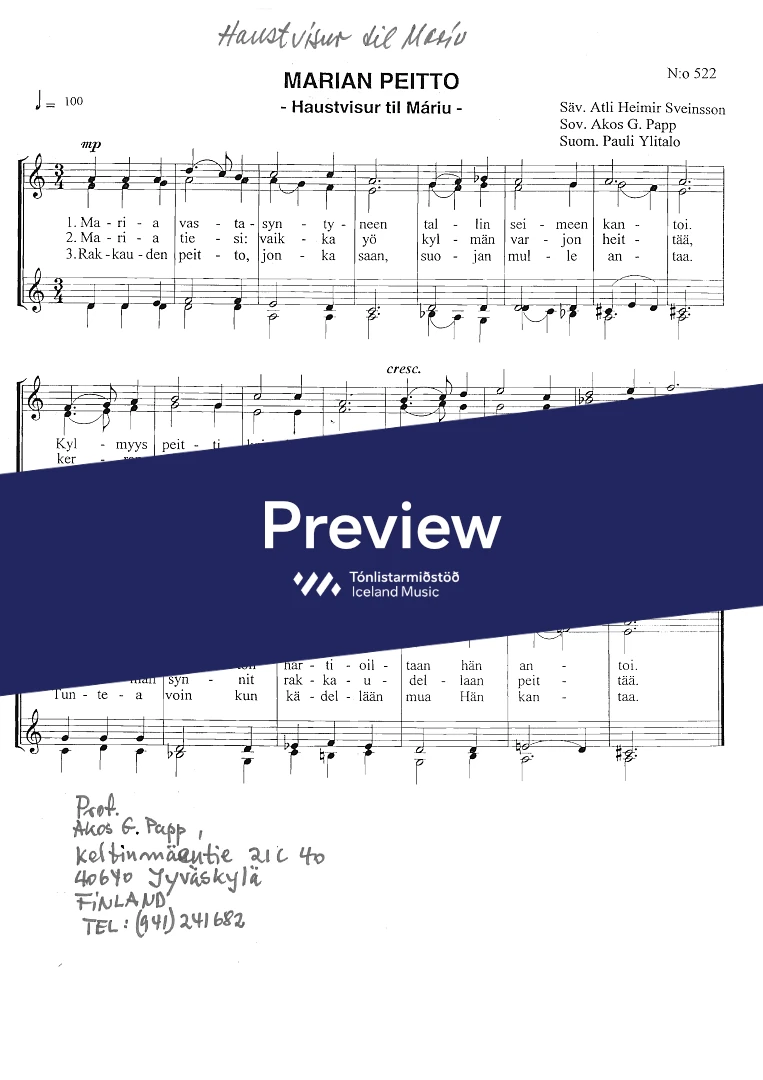 InstrumentationFemale choir / Children’s choir