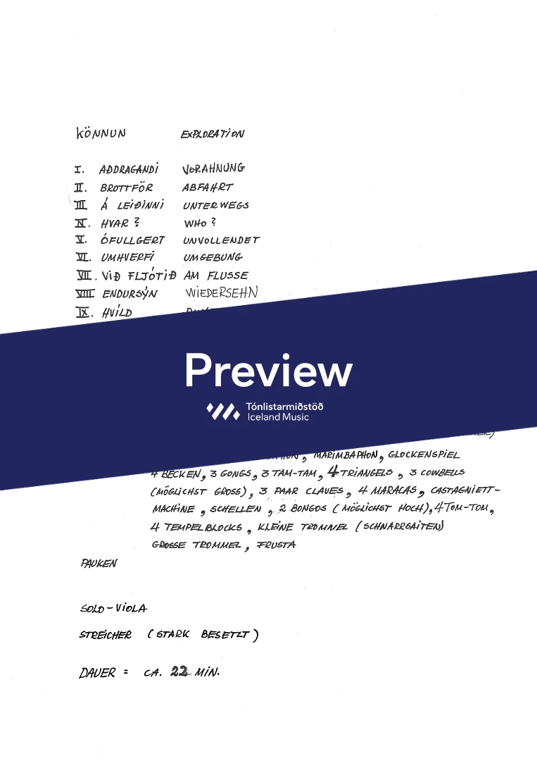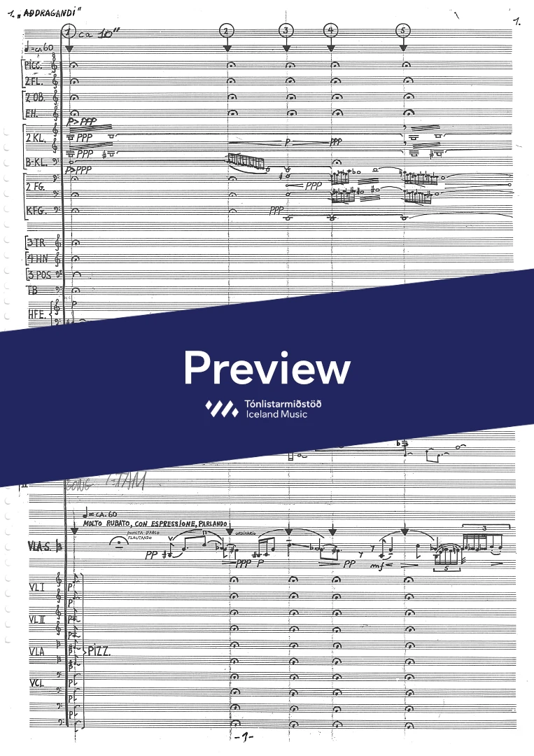 3.3.3.3-4.3.3.1 - tmp. - perc.(4) - hp. - cel. - el.org.- guit. - vla. solo - str.