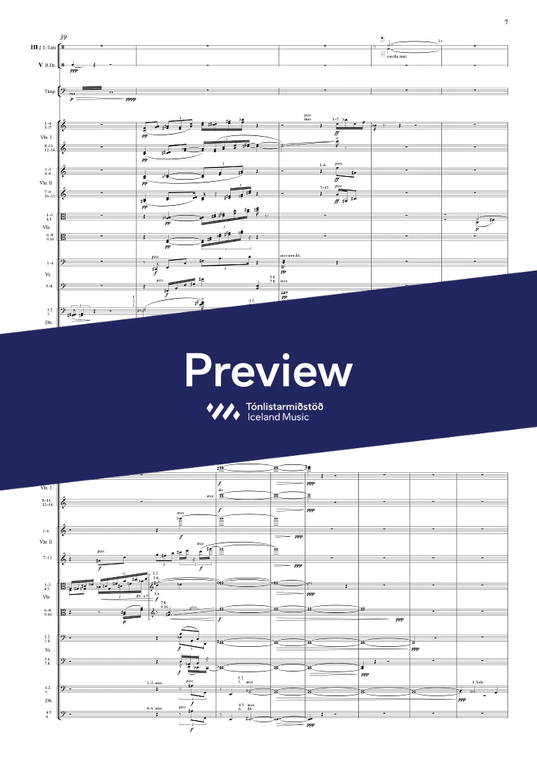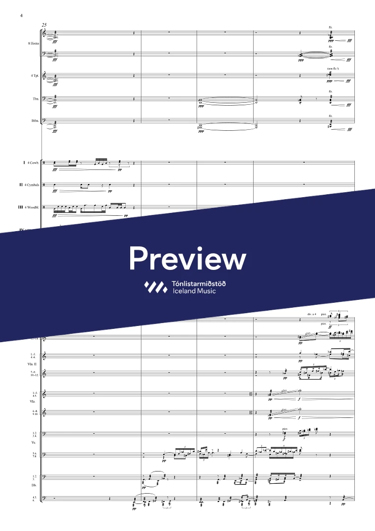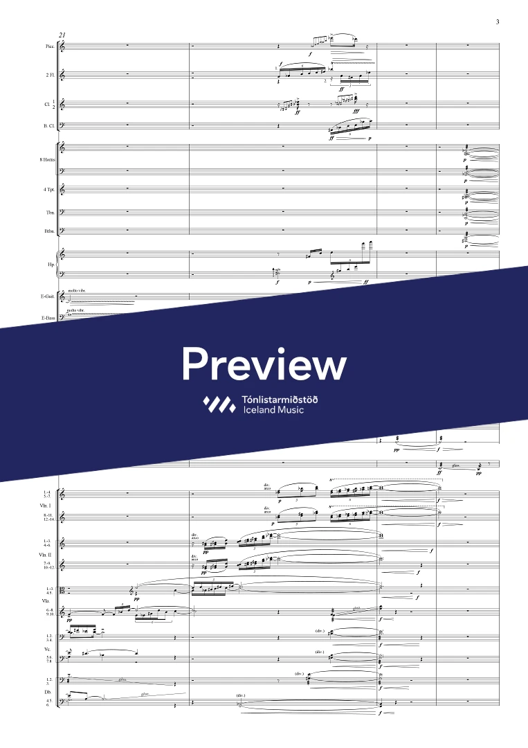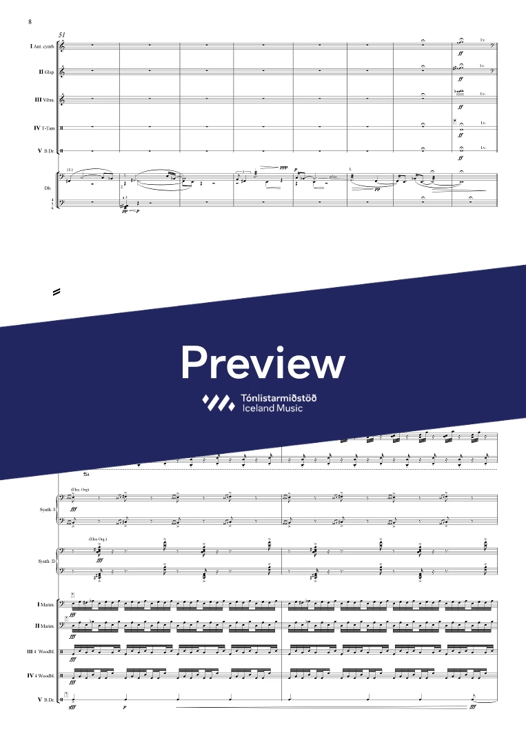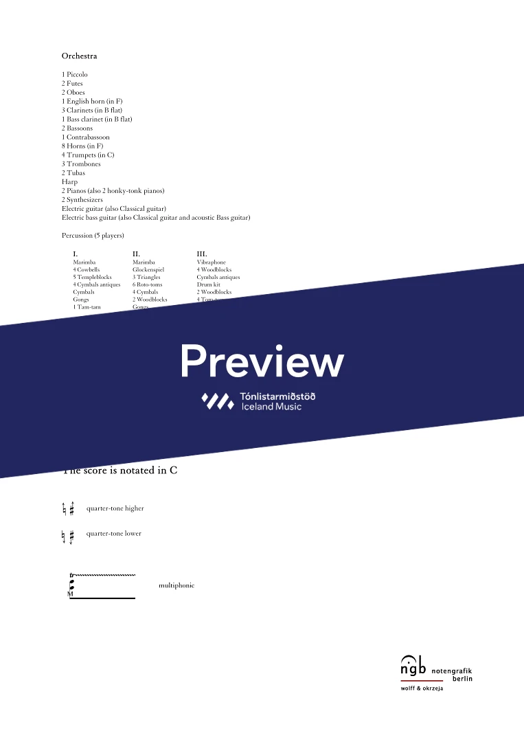 Instrumentation 1Pic.2Fl.2Ob.1Eng.hrn.3Cl.1Bcl.2Bsn.1Cbsn. - 8Hrn.4Trp.3Trb.2Tub. - Hrp.2Pno.2Syn.El.guit.El.bas.5Perc.