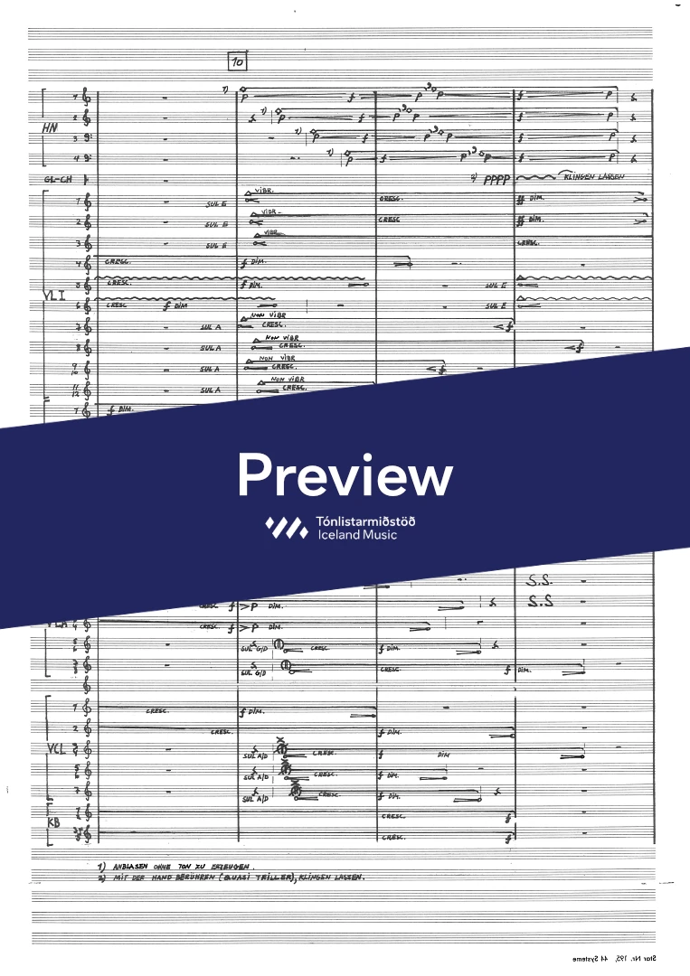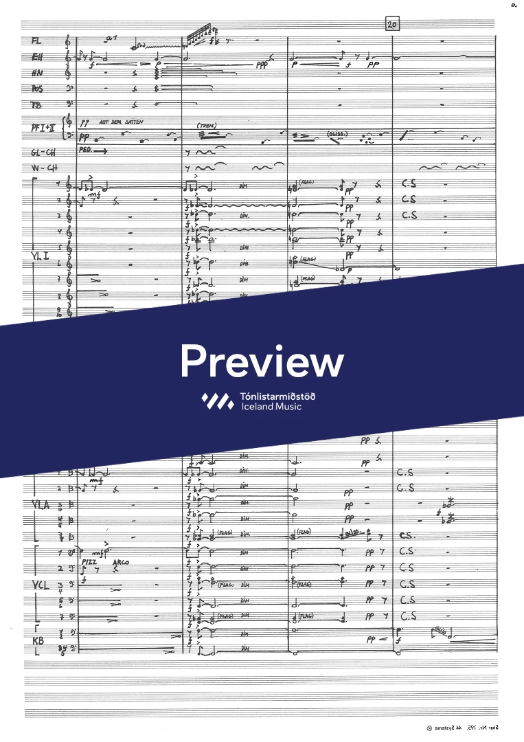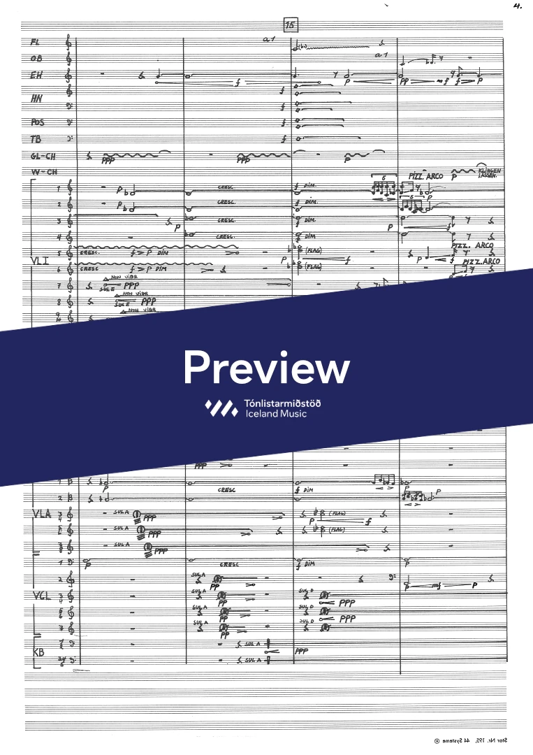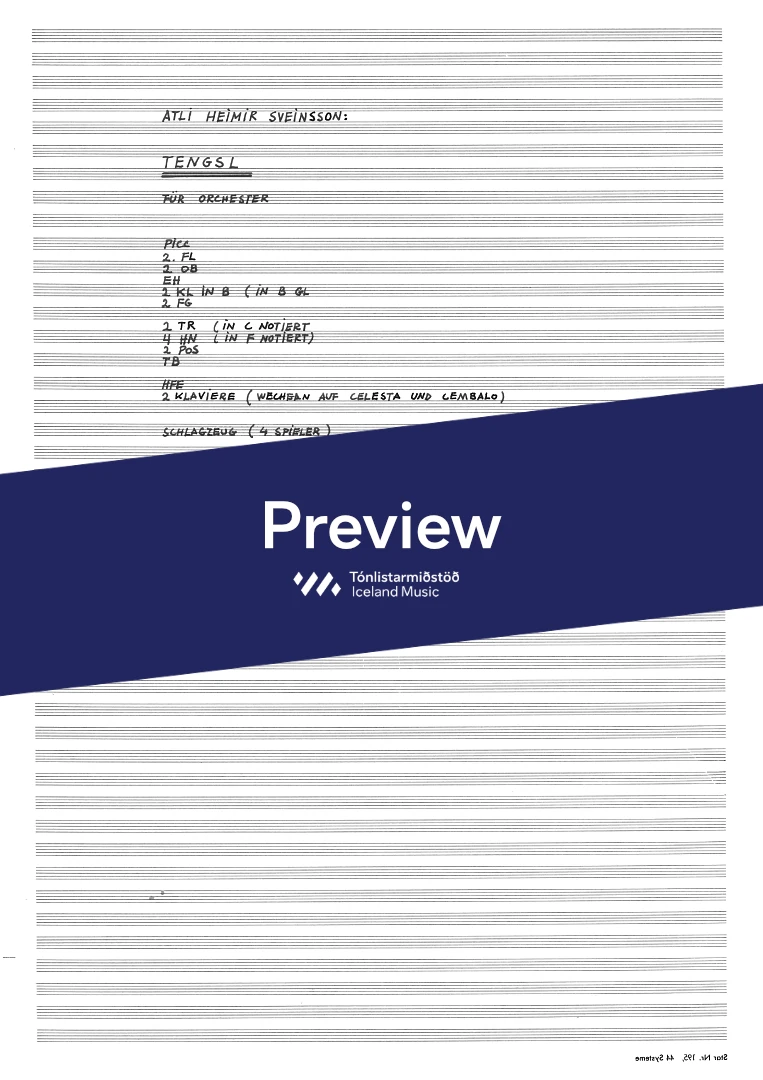 Instrumentation 3(picc.).3(c.ang)2.2-4.2.2.1 - perc.(4) - pno.(2) - cel/hpsch. - hp. -. str.