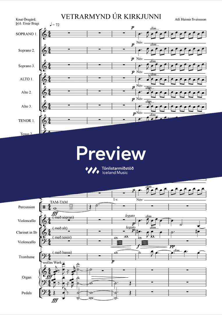 InstrumentationClarinets, Trombone, Percussion, Organ, Mixed choir, Cello