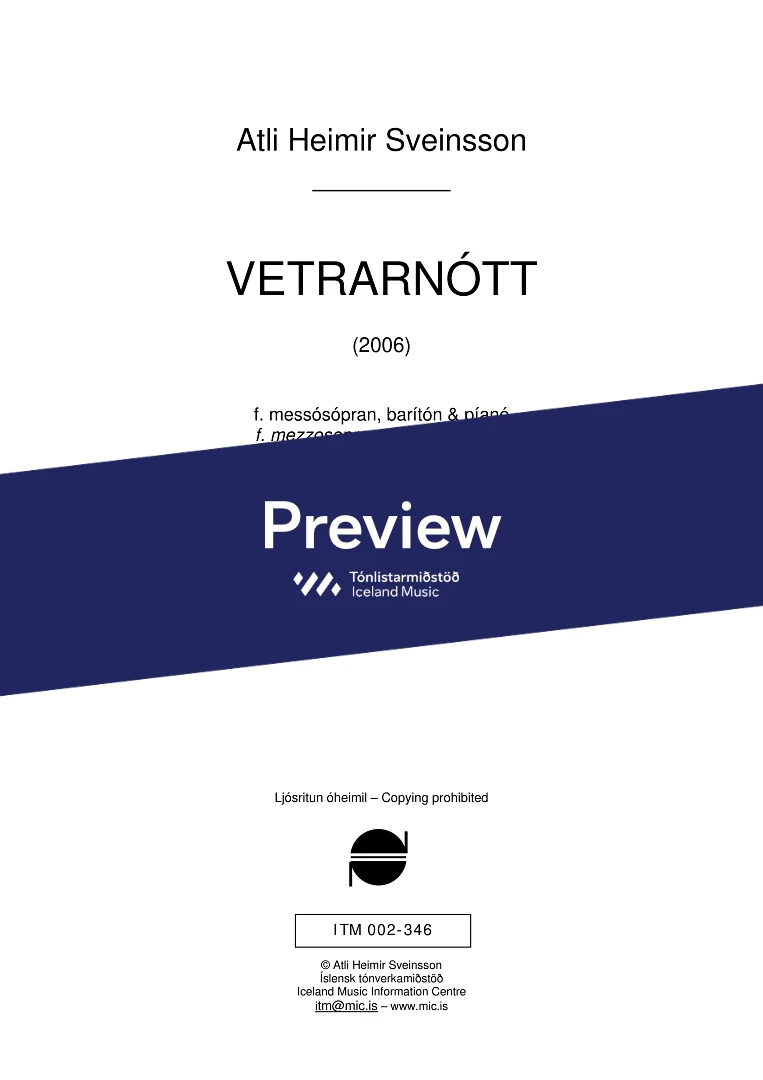 Text sampleNótt, nótt. Sjá, hátt á hini bláum skín heimur starna kringum tunglið bjart