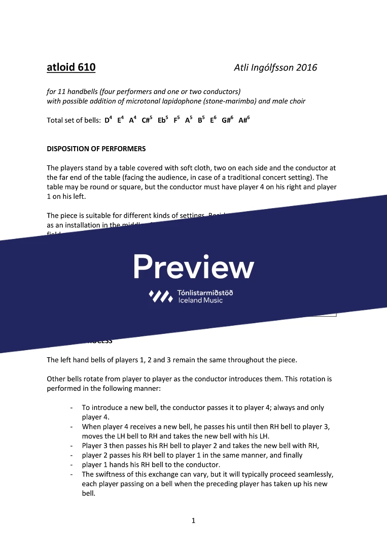 Instrumentation handbells(11) - four players, lapidophone (stone marimba) - 1 or 2 conductors