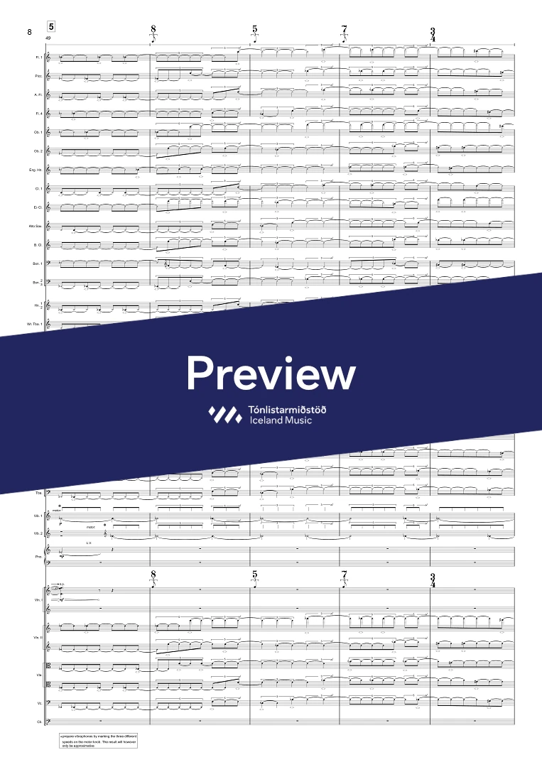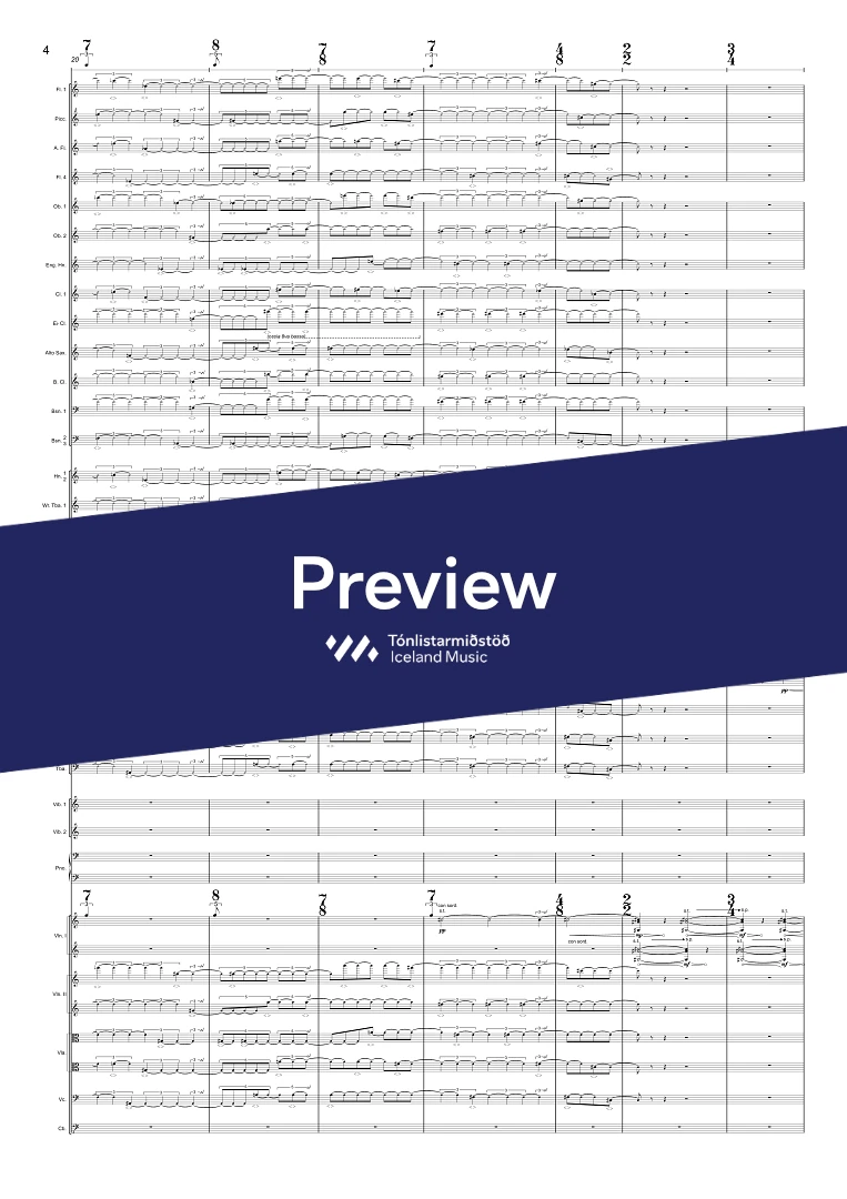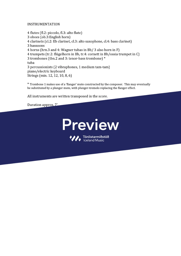 Instrumentation 4(picc.a-fl.), 3(c-ang.) 4(Eb-cl.,a-sax., B-cl.), 3 - 4(3&4Wagner-tuba), 4(2:flg.horn 4: cornet) 3, 1 - perc.(3) - pno/electric keyboard - str.