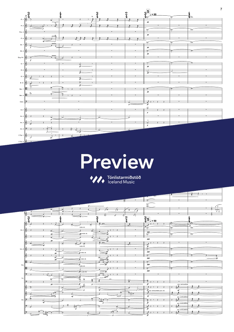 Instrumentation 4(2picc.)3(c-a.)4(bcl.)3(cbn.) - 4,4,4,1 - perc.(3) - pno. - str.