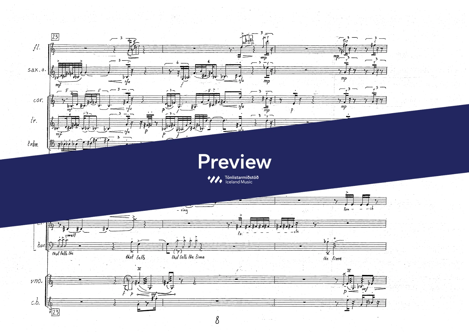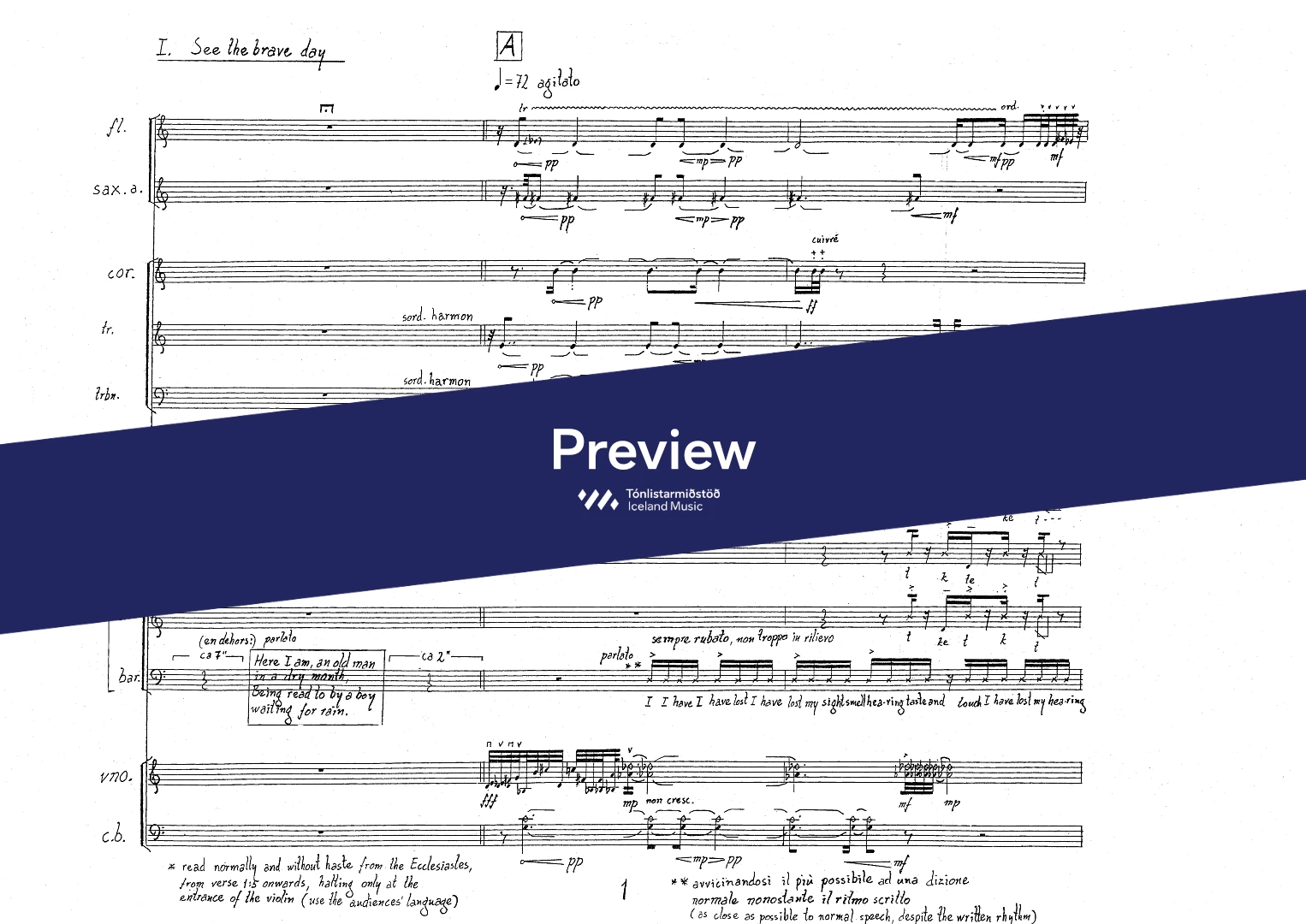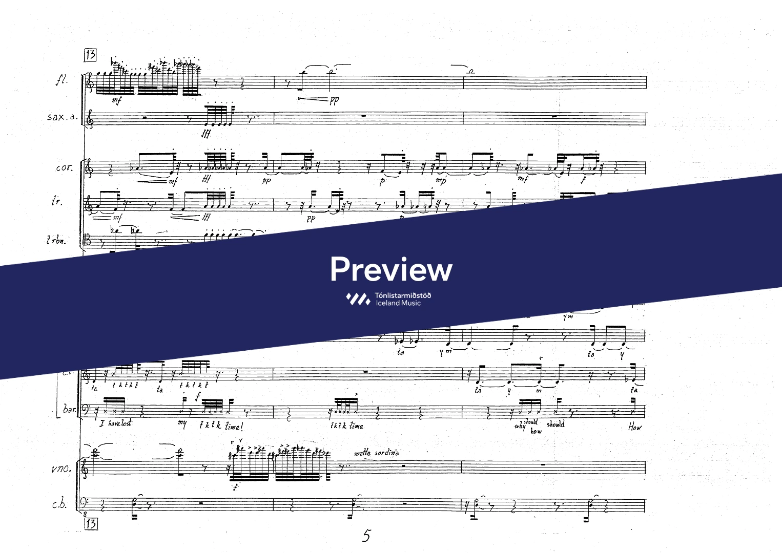 InstrumentationFlute, French Horn, Trumpets, Trombone, Saxophones, Soprano, Mezzo-soprano, Baritone, Violin, Double Bass