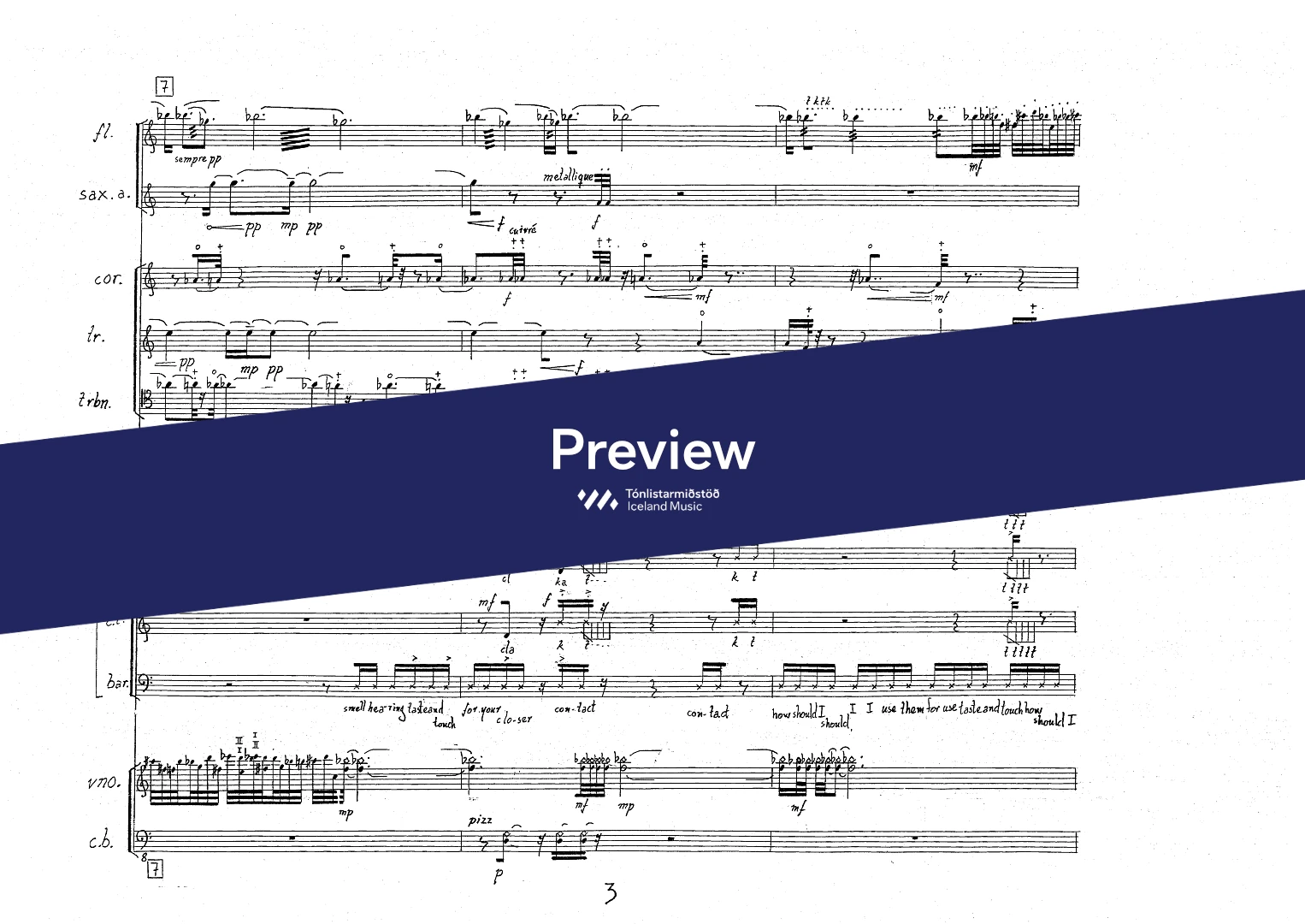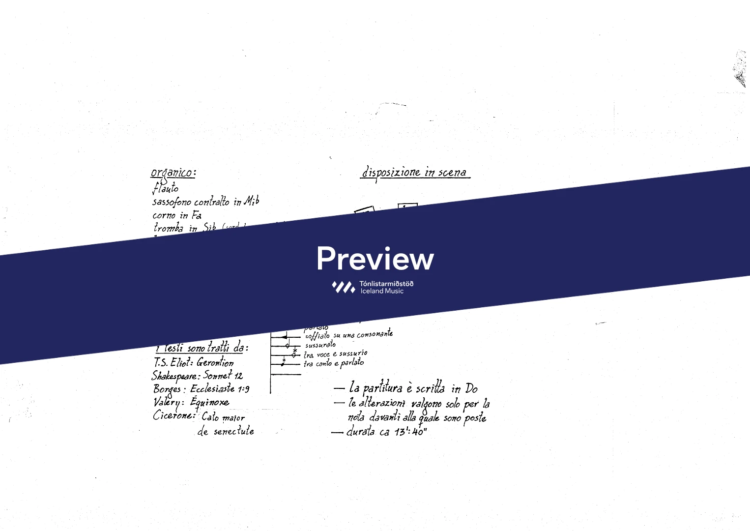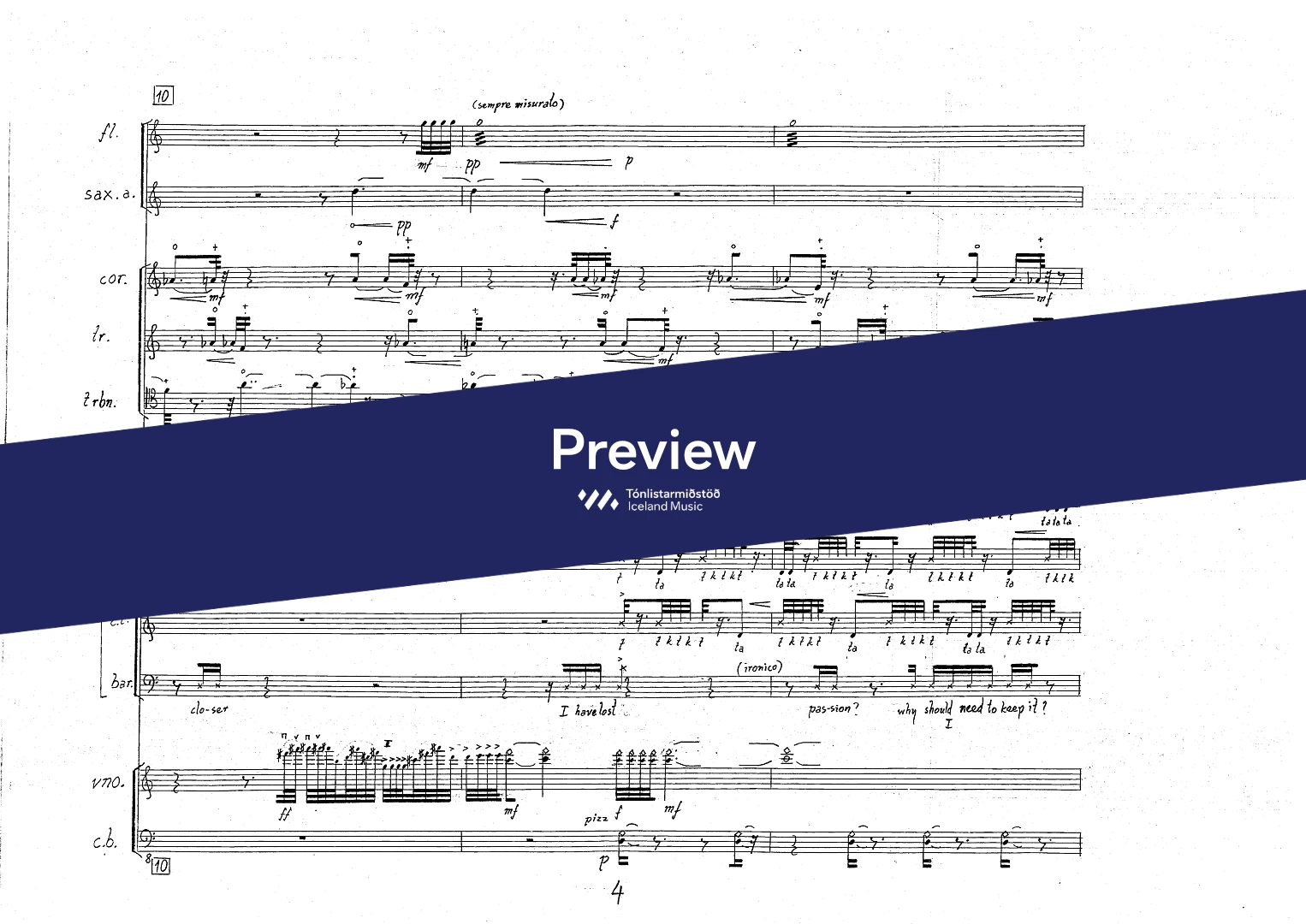 InstrumentationFlute, French Horn, Trumpets, Trombone, Saxophones, Soprano, Mezzo-soprano, Baritone, Violin, Double Bass