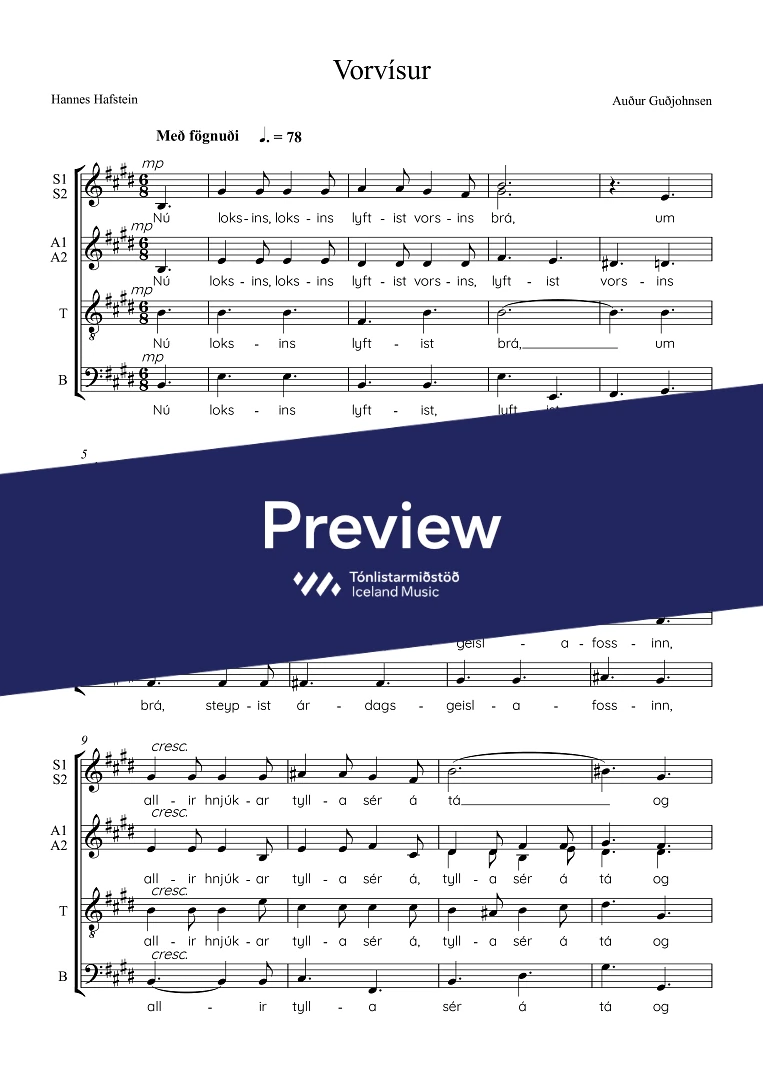 Text sampleNú loksins, loksins lyftist vorsins brá
