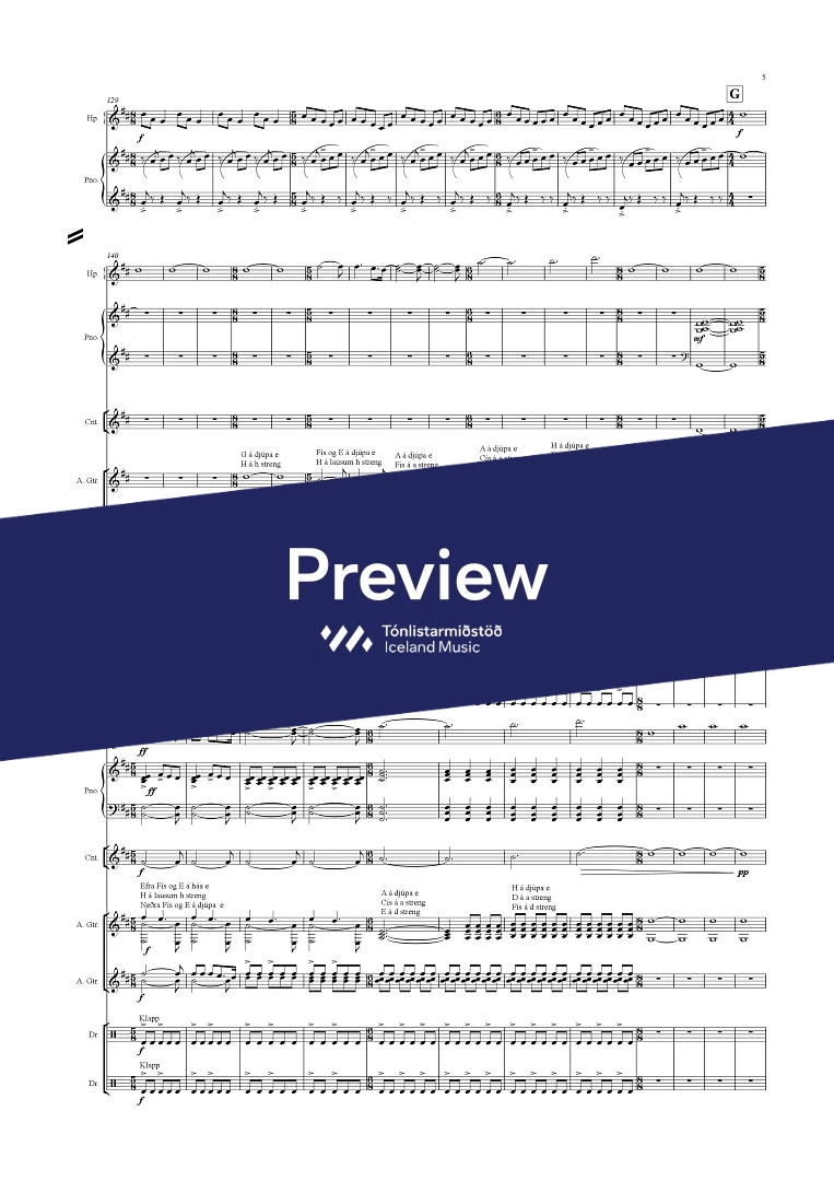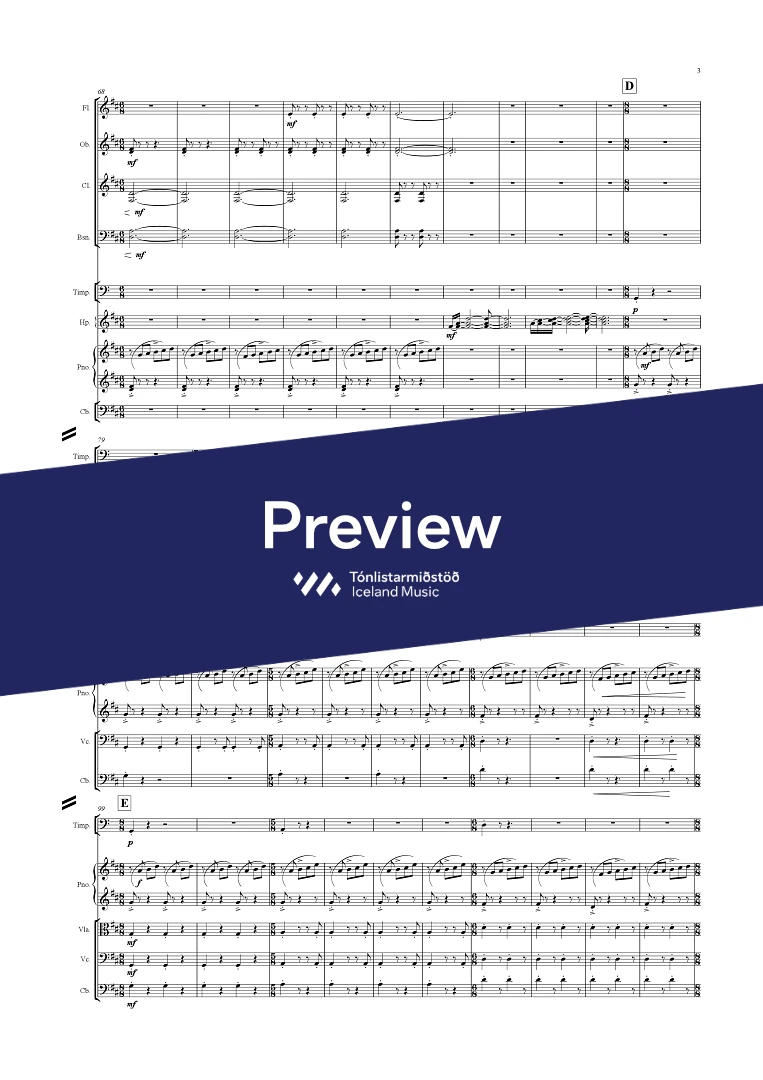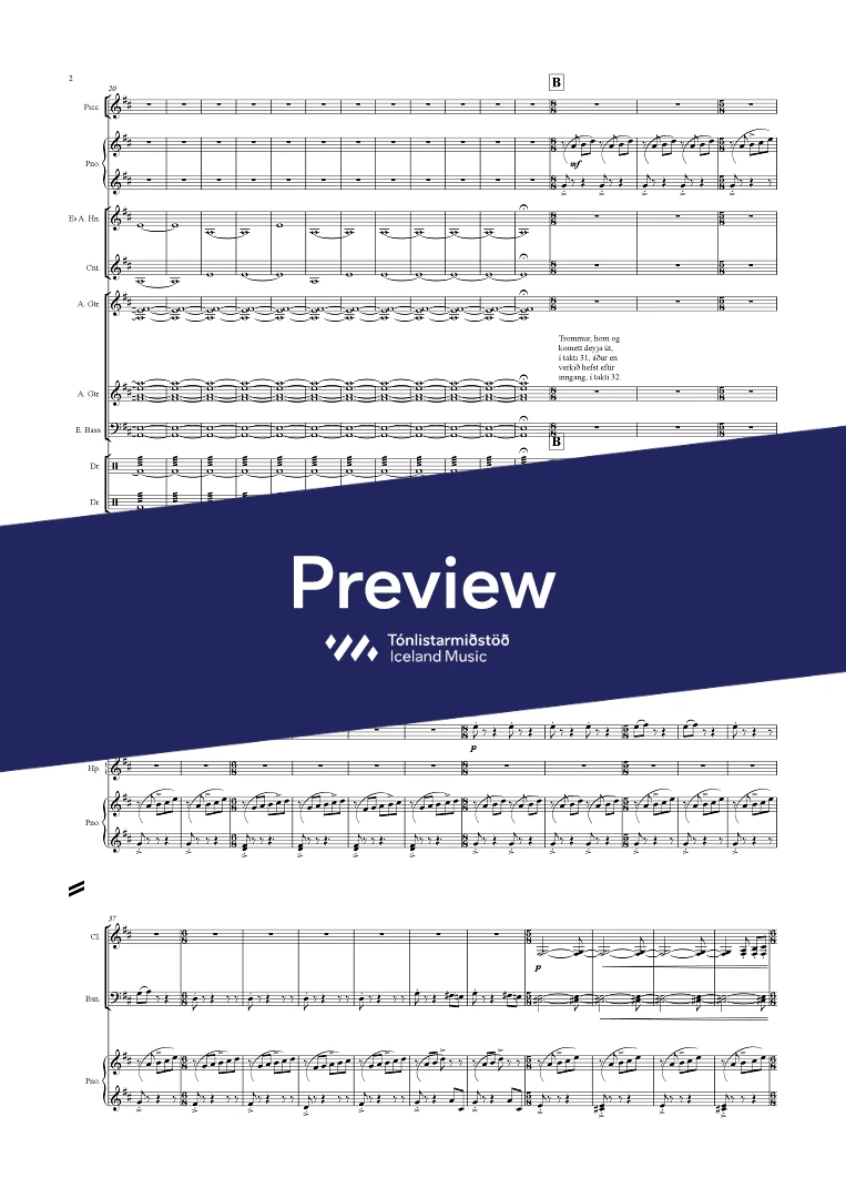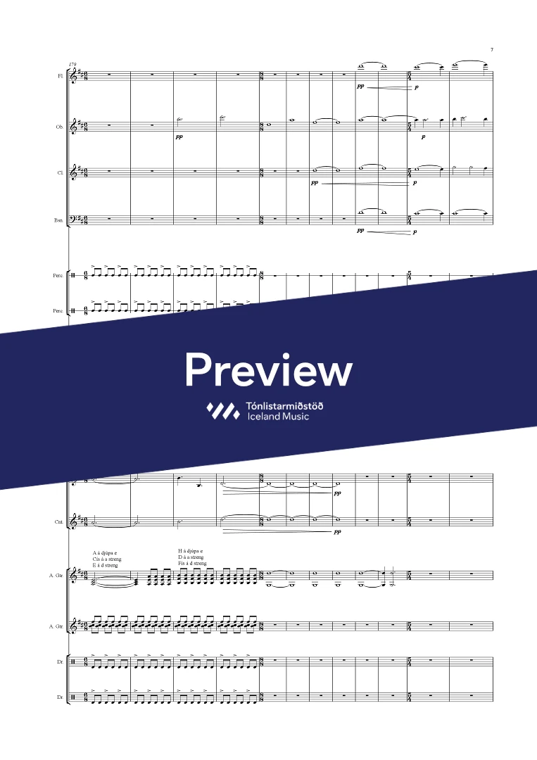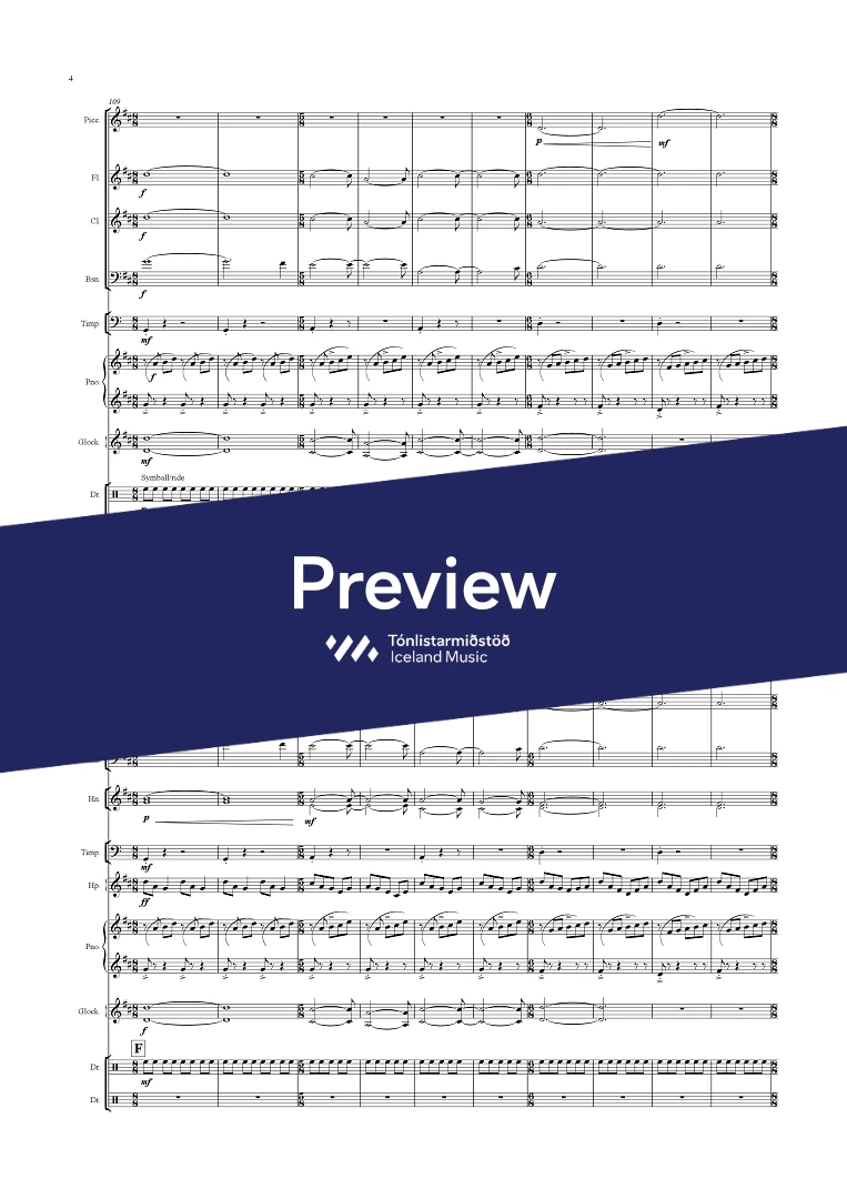 Instrumentation 3(picc.),2,2,2 - 4,2,2,0, - tmp. - perc.. - hp. - pno. - Altohorn, Cornet, - glock, - guit.(2) - el.bass - drumkit(2) str.