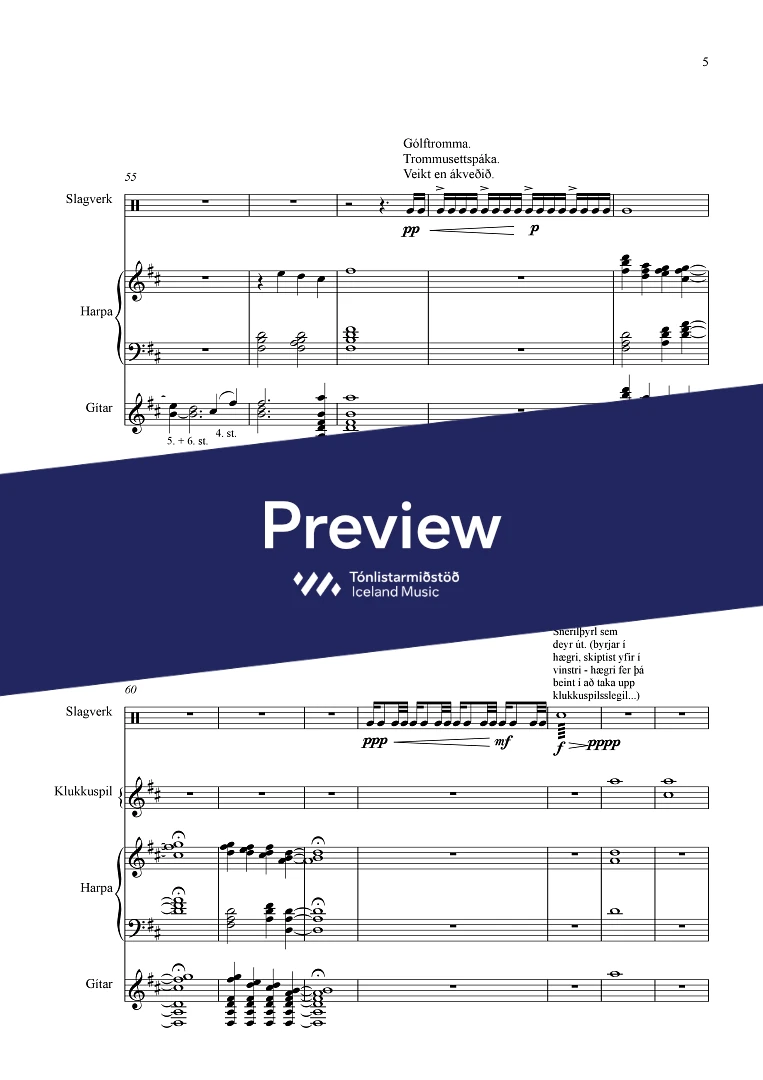 3(picc.),2,2,2 - 4,2,2,0, - tmp. - perc.. - hp. - pno. - Altohorn, Cornet, - glock, - guit.(2) - el.bass - drumkit(2) str.